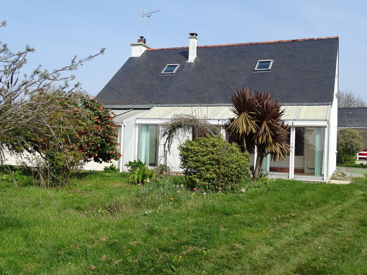 Maison à usage d'habitation de 136 m² habitables sur un beau terrain exposé sud de 3020 m². La maison est couverte en ardoises naturelles. Elle se compose au rez-de-chaussée d'un hall d'entrée et dégagement avec placards, salon (28,40 m²) avec cheminée à insert ouvrant sur véranda chauffée de 22 m² et préau couvert, deux chambres (10,10 m² et 12,69 m²) cuisine aménagée (9,25 m²), une salle d'eau, WC, pièce à usage de salle de jeux avec entrée par un sas/véranda, buanderie et bureau dans petite extension à toit plat.