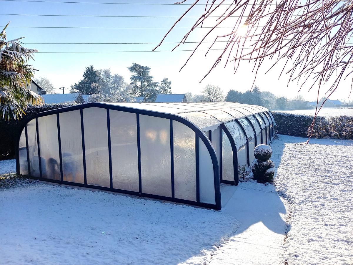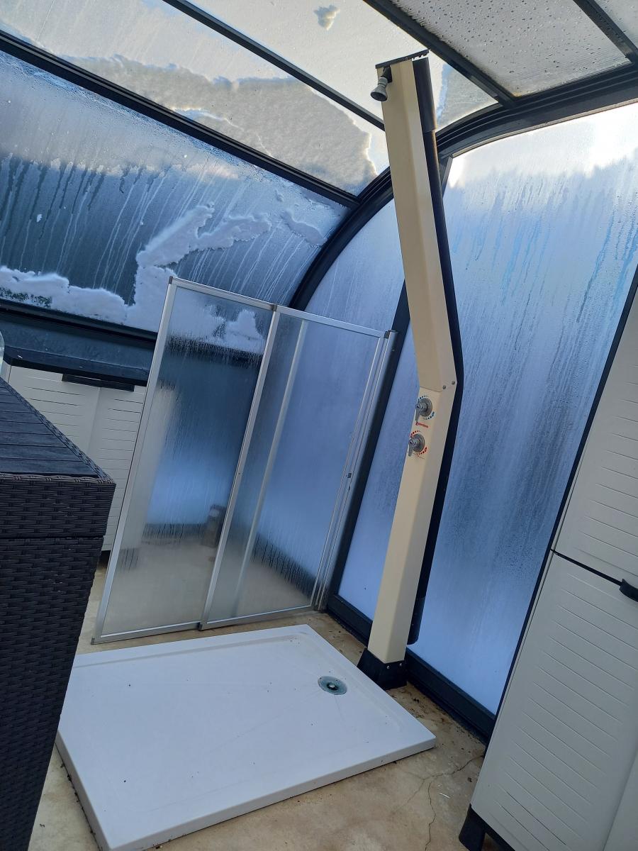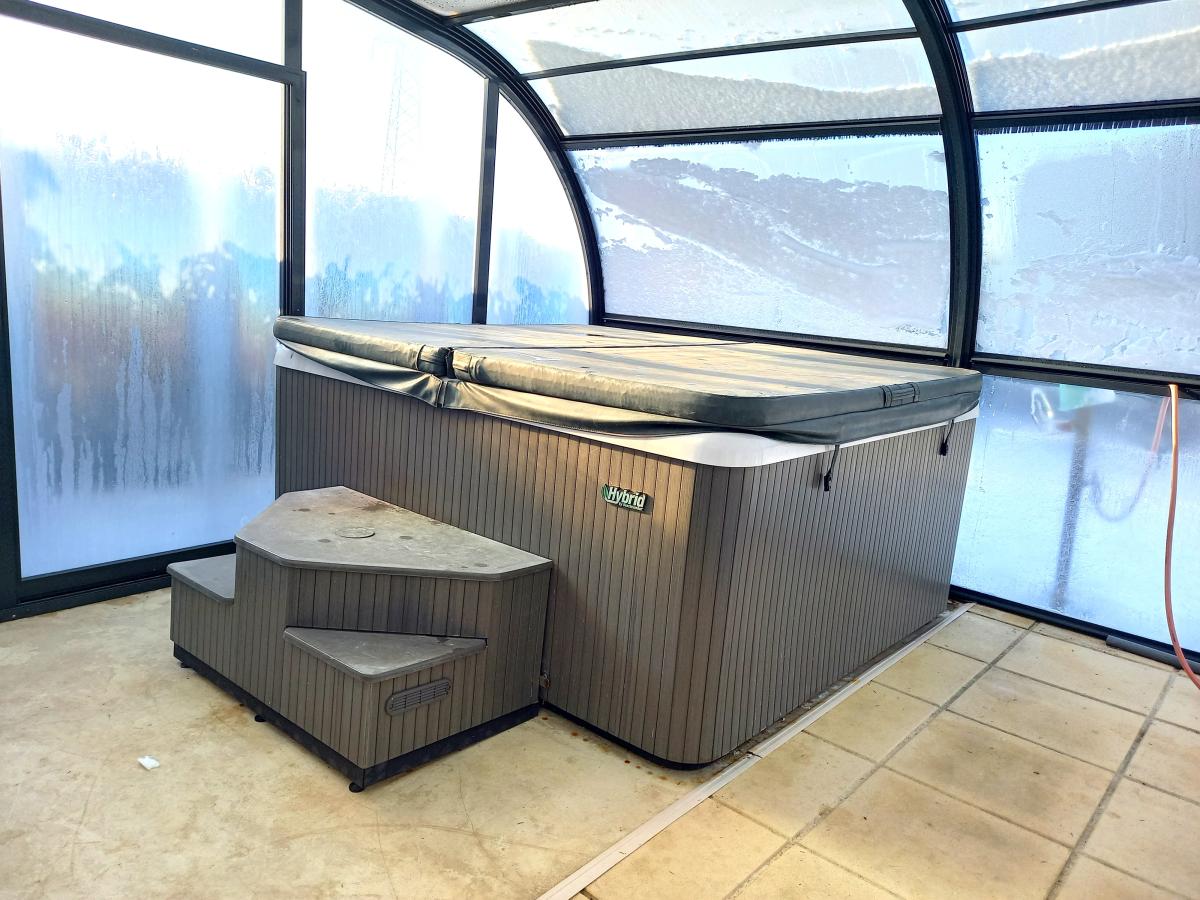 Agréable jardin clos 1605 m2 avec Piscine au sel de 2000 (liner refait 2012) couverte 5X10 + jacuzzi et douche solaire - terrasse carrelée sud