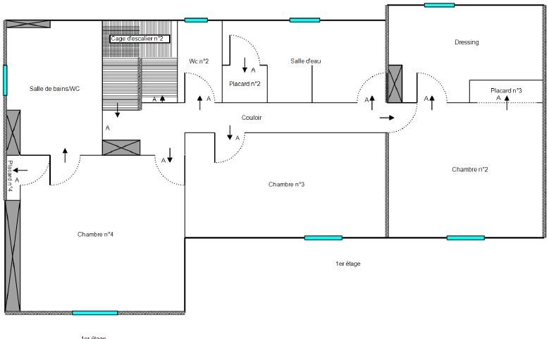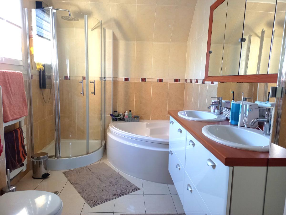 A l'étage avec clim réversible chambre + placard +petite pièce rangement - salle d'eau - wc - chambre - suite parentale + sbains (baignoire + douche +wc suspendus - dble vasque)