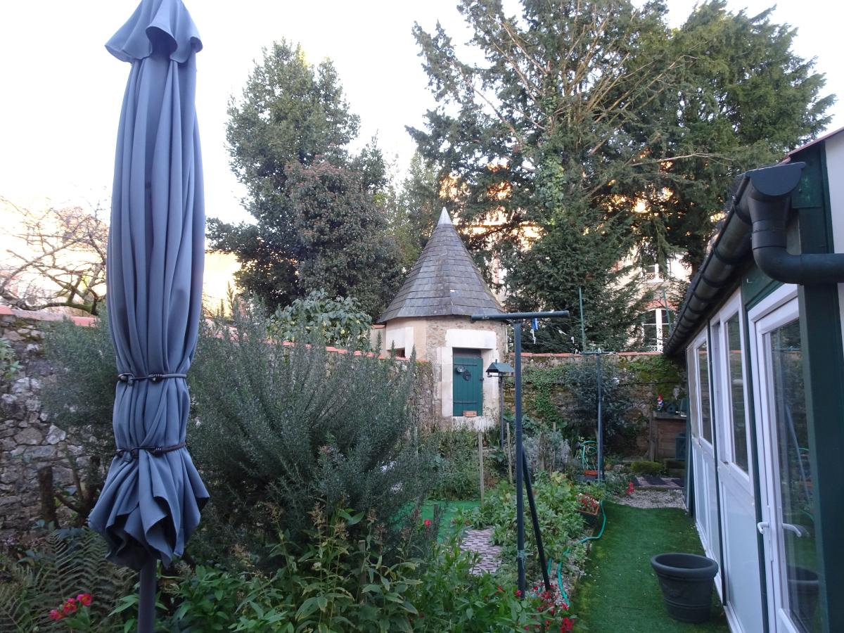 Un jardin avec dépendances (cave et cellier), un puits mitoyen. Le tout sur un terrain clos à l'arrière de la maison, d'environ 173 m²
