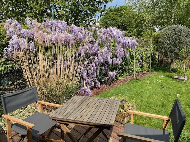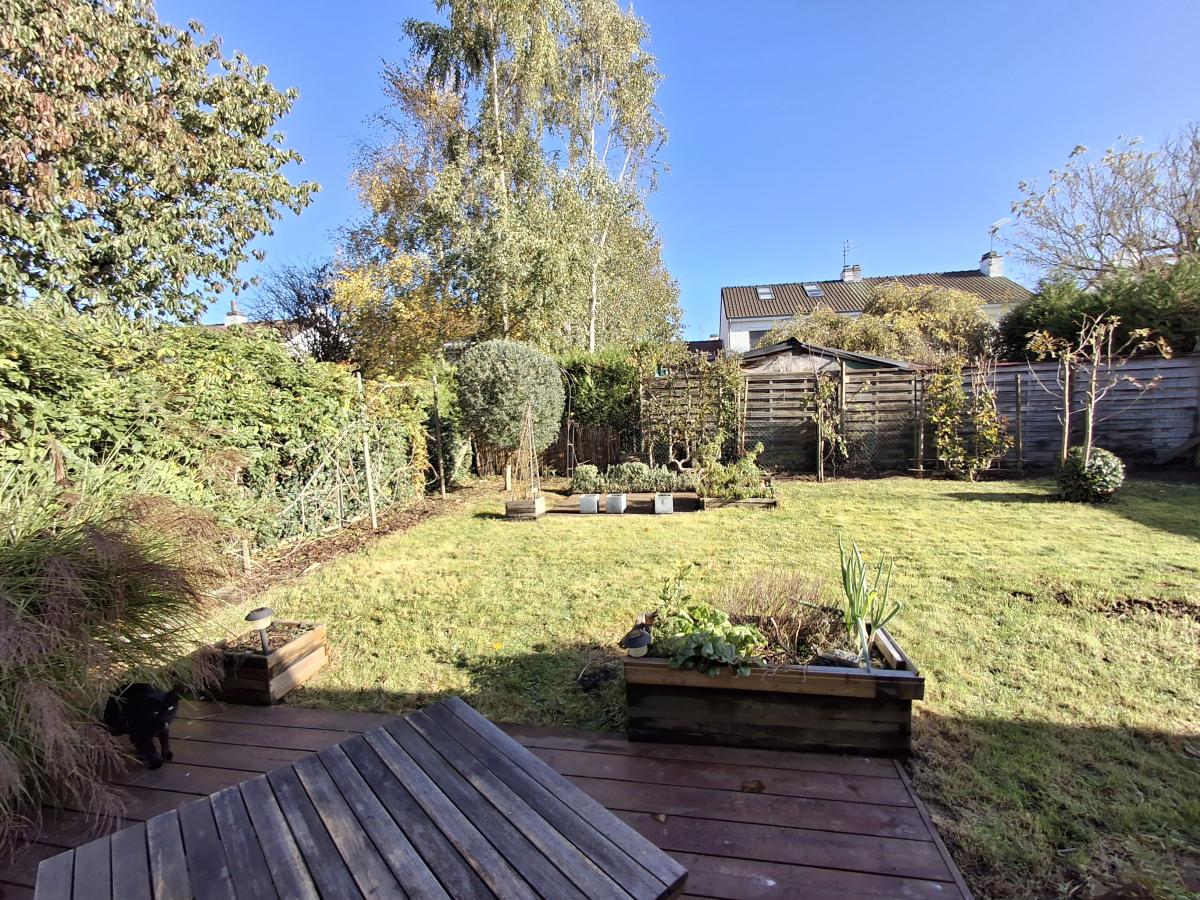 UN JARDIN devant + aire de stationnement pour 2 voitures et un Agréable JARDIN à l'arrière clos et planté.