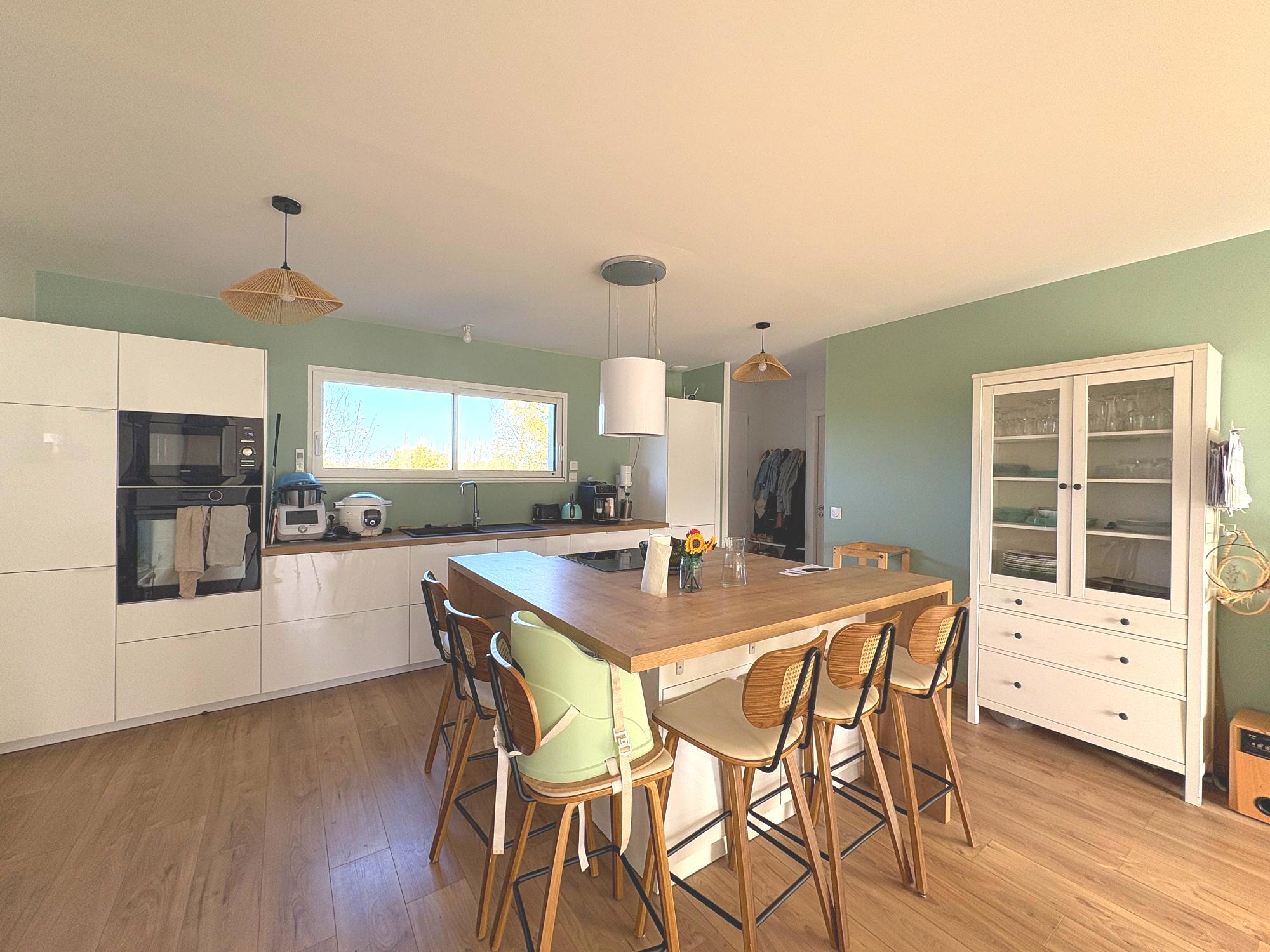 Une entrée, une grande pièce de vie composée d'un salon-séjour avec cuisine aménagée et équipée, 5 chambres, dont une suite parentale avec salle d'eau et dressing, une buanderie, une salle de bains et toilettes.