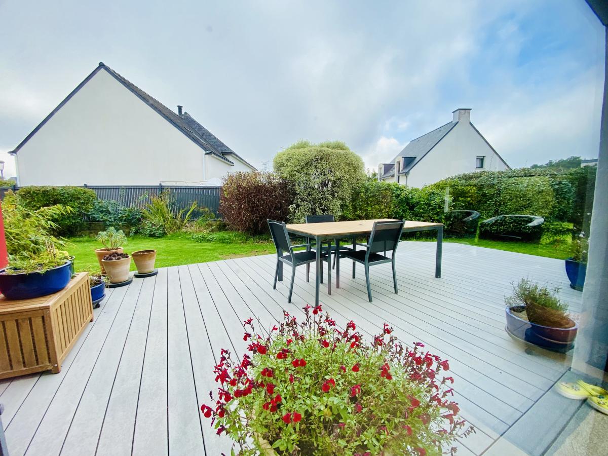 Maison familiale moderne à Plescop – 143 m² – 3 à 5 chambres – Grand jardin arboré – Vie de plain-pied