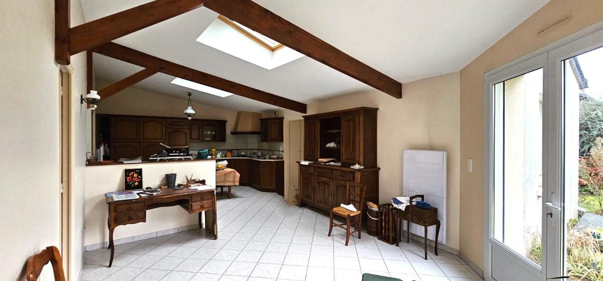 Maison en centre bourg de NORT SUR ERDRE, dans un secteur recherché, sur un terrain de 382 m² et comprenant : Au rez-de-chaussée : Entrée avec placard, salon et salle à manger avec cheminée insert, cuisine aménagée et équipée, une chambre , salle d’eau avec placard, dégagement avec placard et WC. A l’étage : trois chambres.