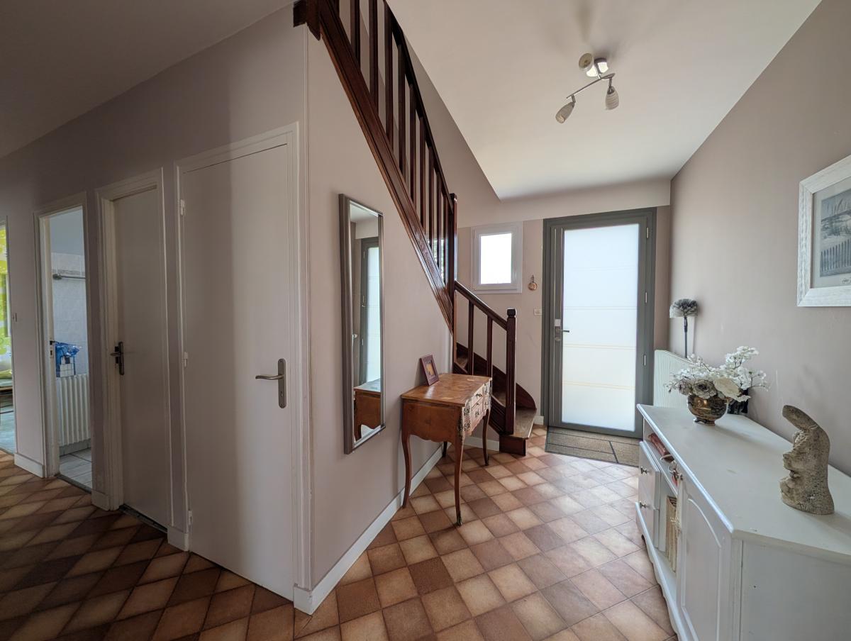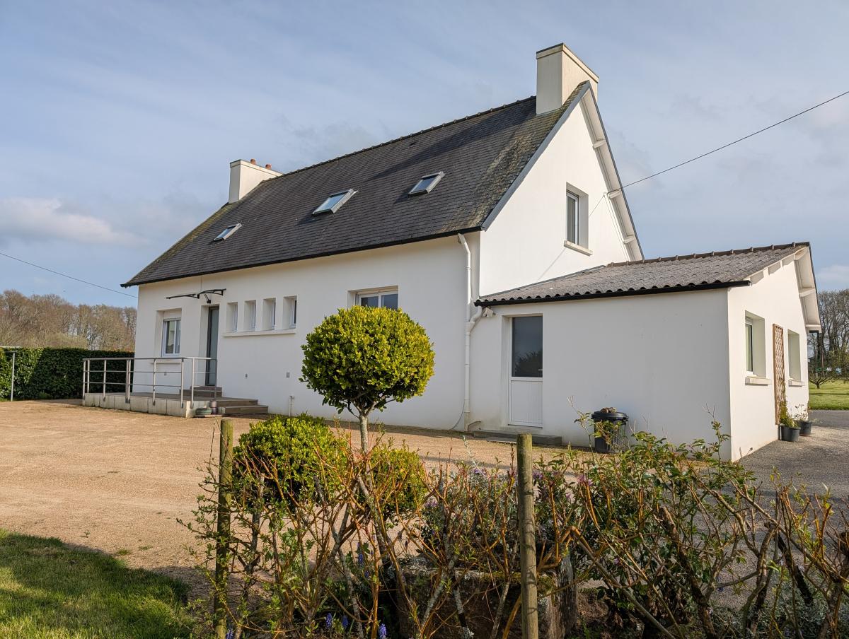 PLOUGONVEN, La Croix de Pierre, à 6km de Morlaix, belle maison de 145 m² comprenant entrée, cuisine ouverte sur salon/séjour, 2 chambres, salle d'eau, wc. A l'étage : 3 chambres, salle d'eau, wc. Garage. Atelier et abri. Terrain 4860 m² (constructible).