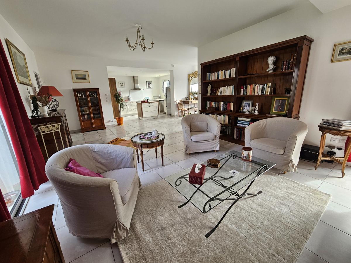 ORVAULT Domaine de la Haute Vallée, dans une impasse, proche de toutes les commodités, de très belles prestations pour cette maison de 146m² construite en 2019 comprenant au rez-de-chaussée, une entrée avec placard, une pièce de vie traversante de 60m² avec cuisine aménagée et équipée et un accès d'un côté à une terrasse avec vue dégagée et de l'autre à un joli jardin sans vis-à-vis avec spa, une buanderie, un bureau, une chambre, un dressing et une salle d'eau. A l'étage, un palier dessert trois chambres, des wc et une salle d'eau.