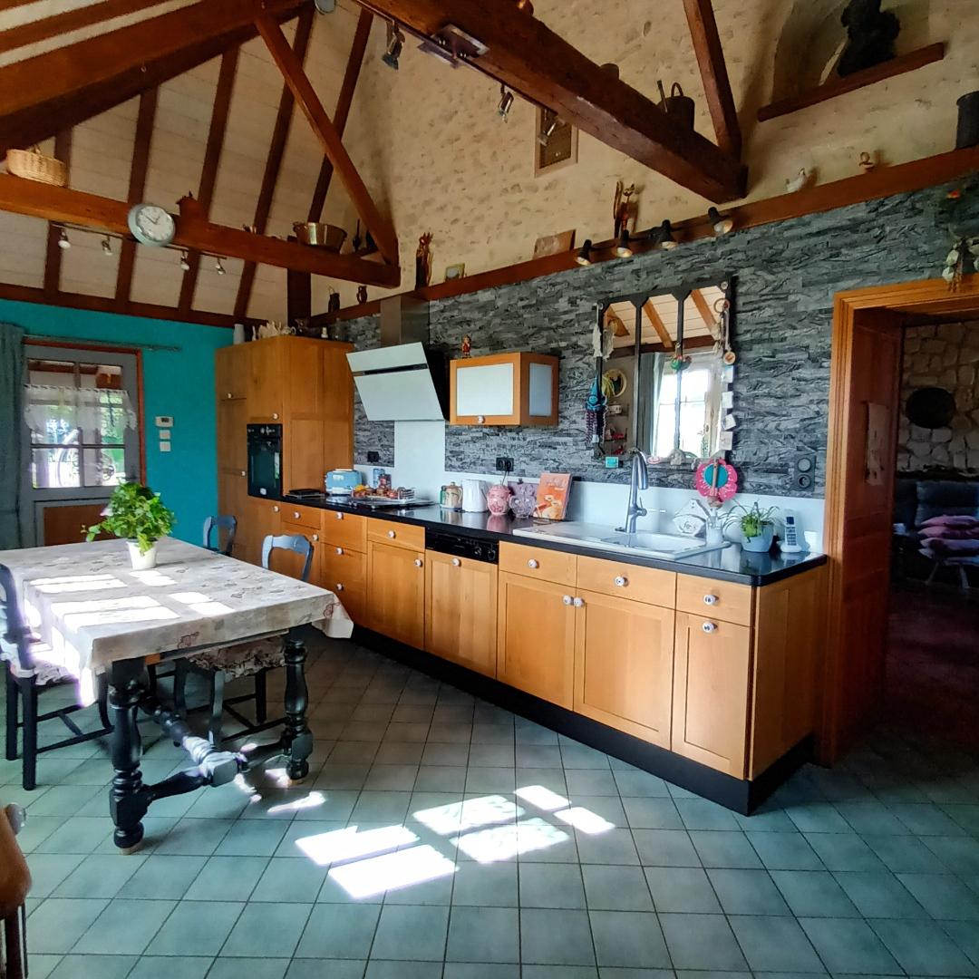 Cuisine aménagée sur mesure avec espace repas, séjour avec cage d’escalier. Couloir desservant une première chambre servant de bureau, un WC, une salle d’eau avec douche italienne, une chambre servant de dressing en enfilade avec une autre chambre.