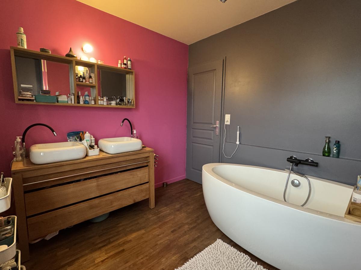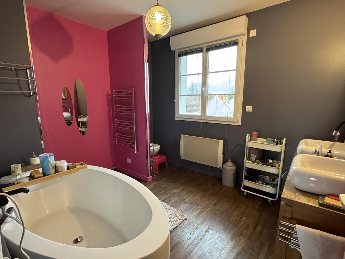 Au premier étage : palier, bureau ou dressing, trois chambres dont une avec dressing attenant, buanderie/lingerie, salle de bains avec WC (baignoire ilot et douche)