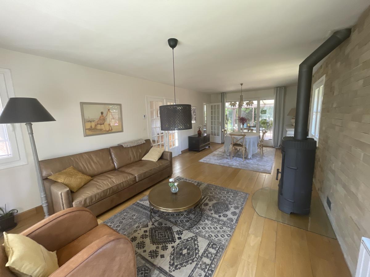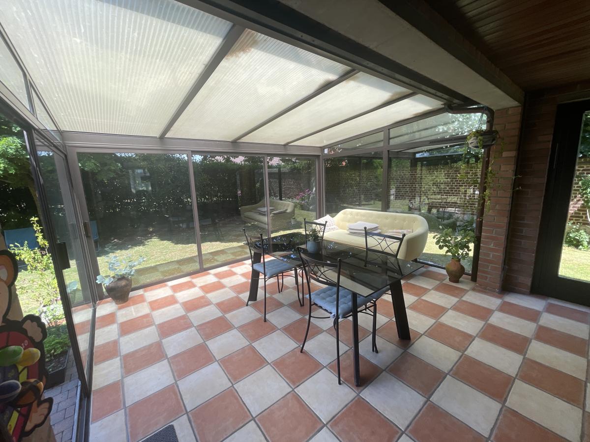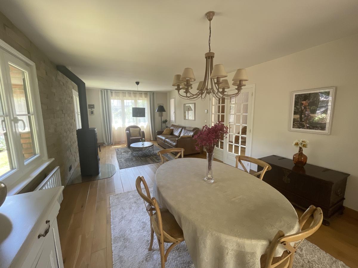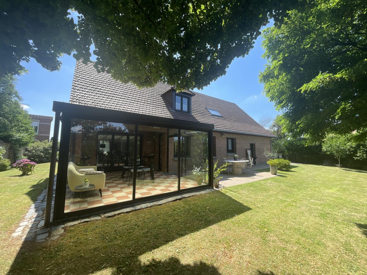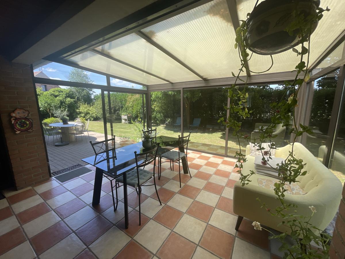 Édifiée sur une parcelle arborée de 945 m², elle développe une surface habitable d’environ 147 m², à laquelle s’ajoute une véranda récente de 20 m², offrant un bel espace de vie supplémentaire tourné vers le jardin.