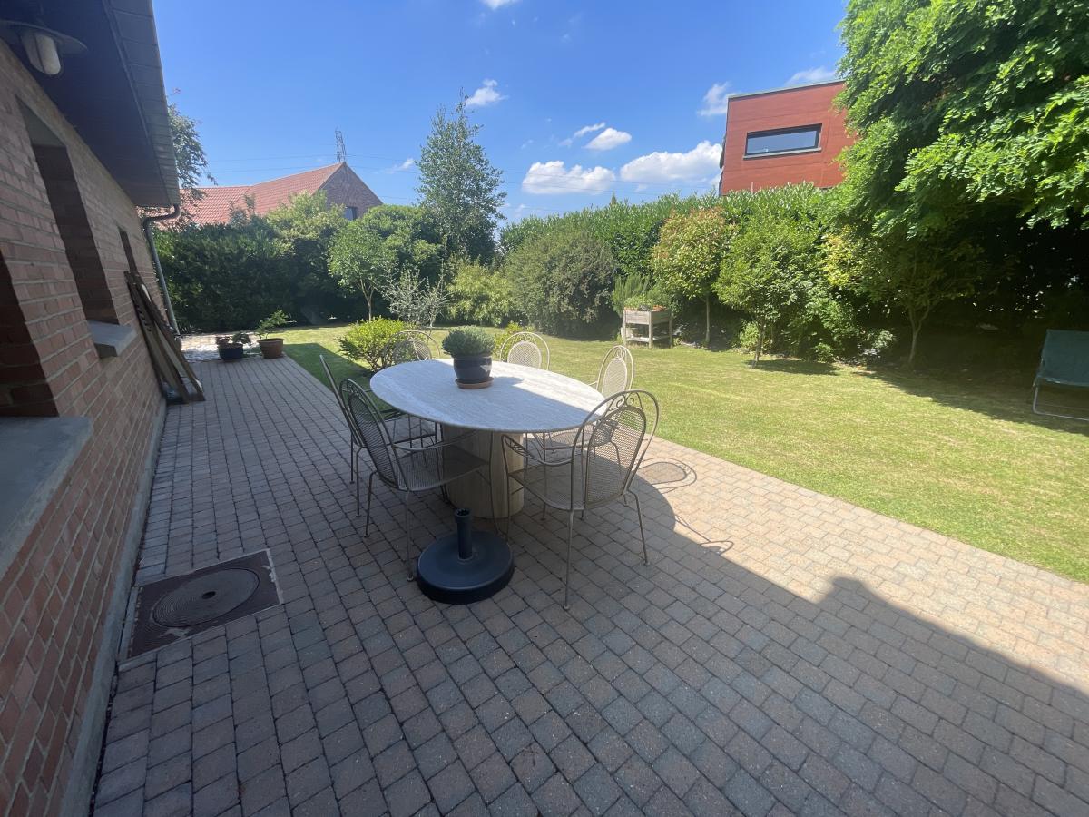 Le jardin, soigneusement entretenu, accueille une terrasse bien ensoleillée, propice aux moments de détente ou de réception. La maison dispose également d’une grande cave en sous-sol, d’un garage et de plusieurs places de stationnement sur la parcelle, avec un accès adapté aux camping-cars.