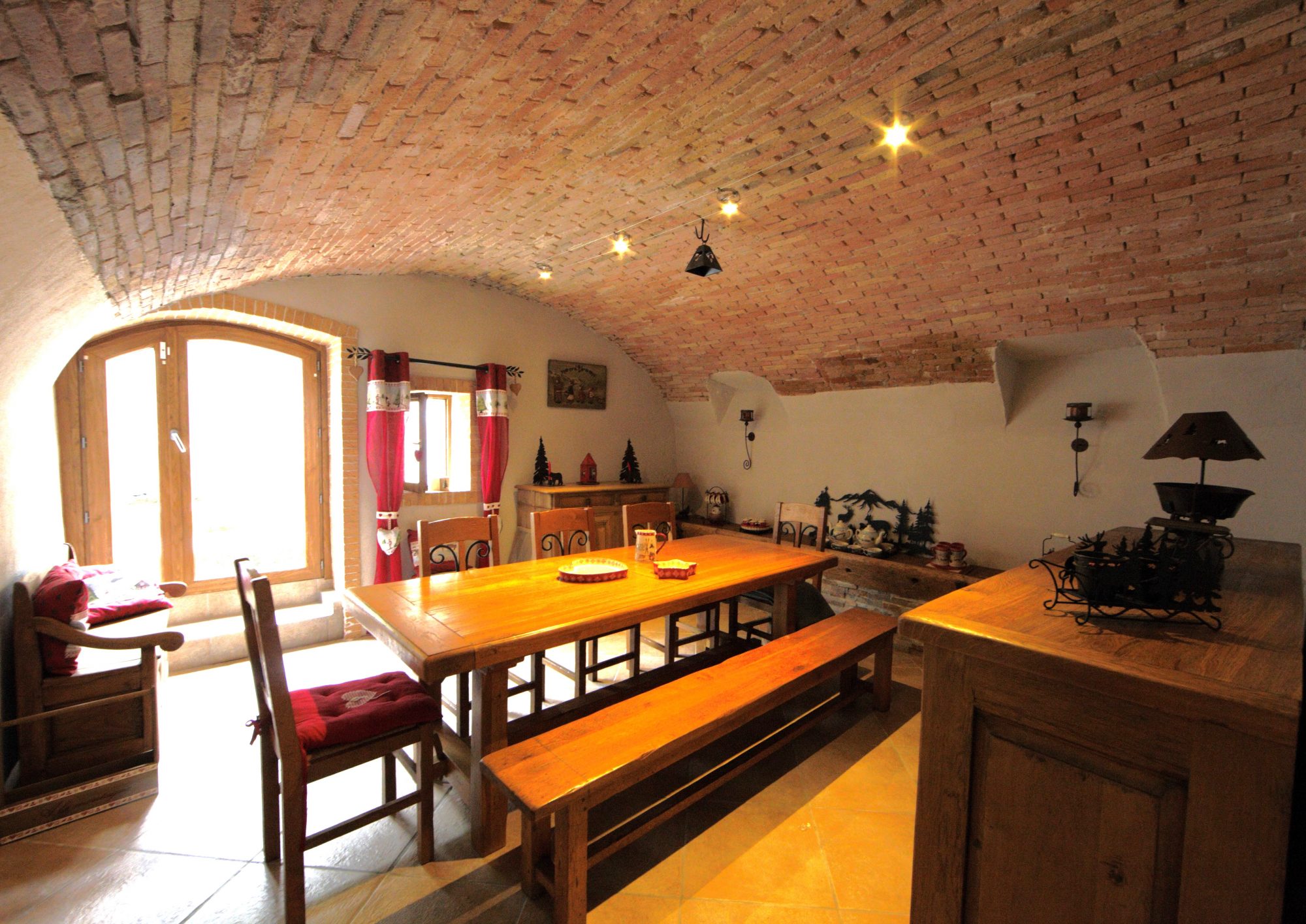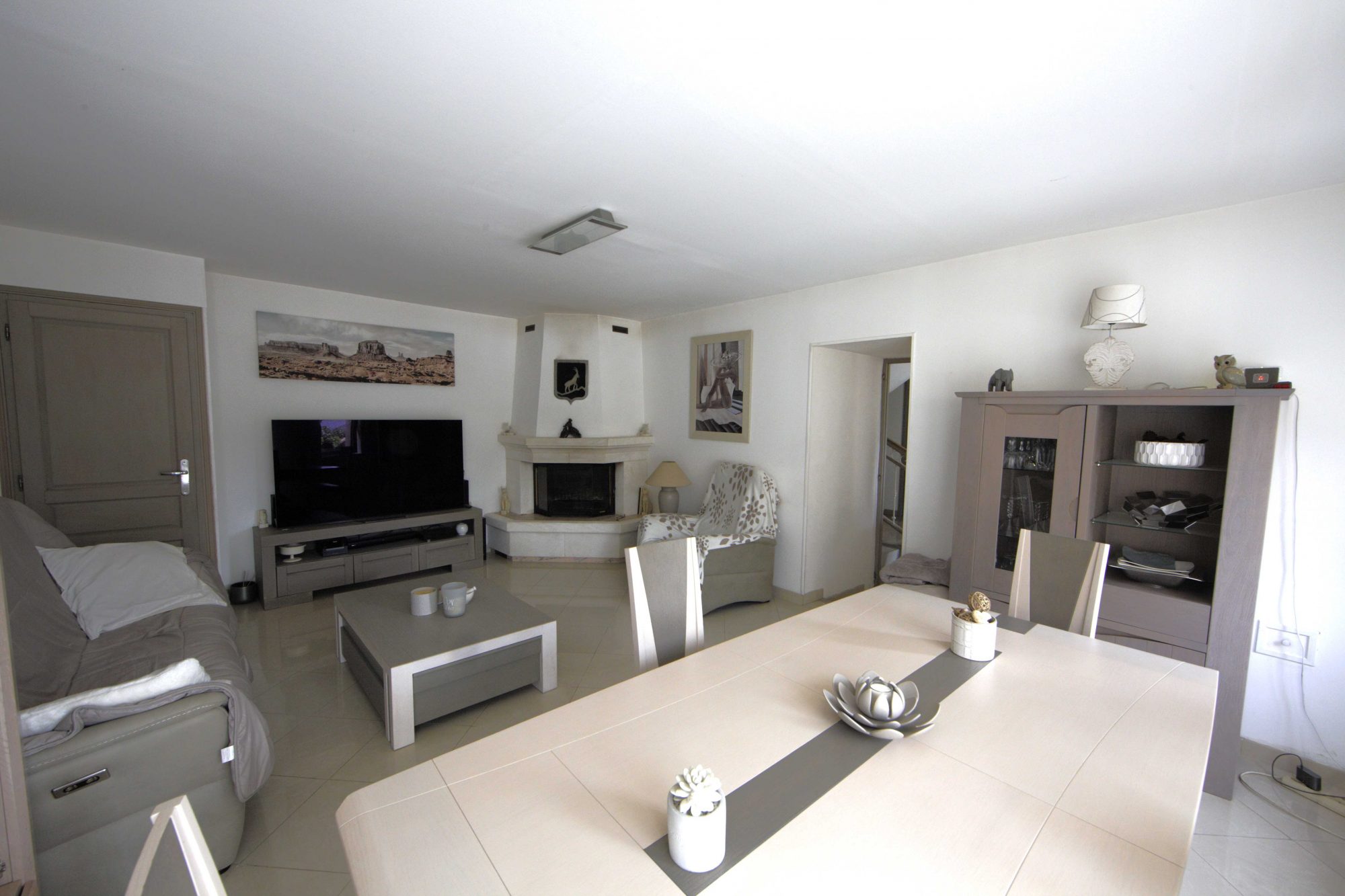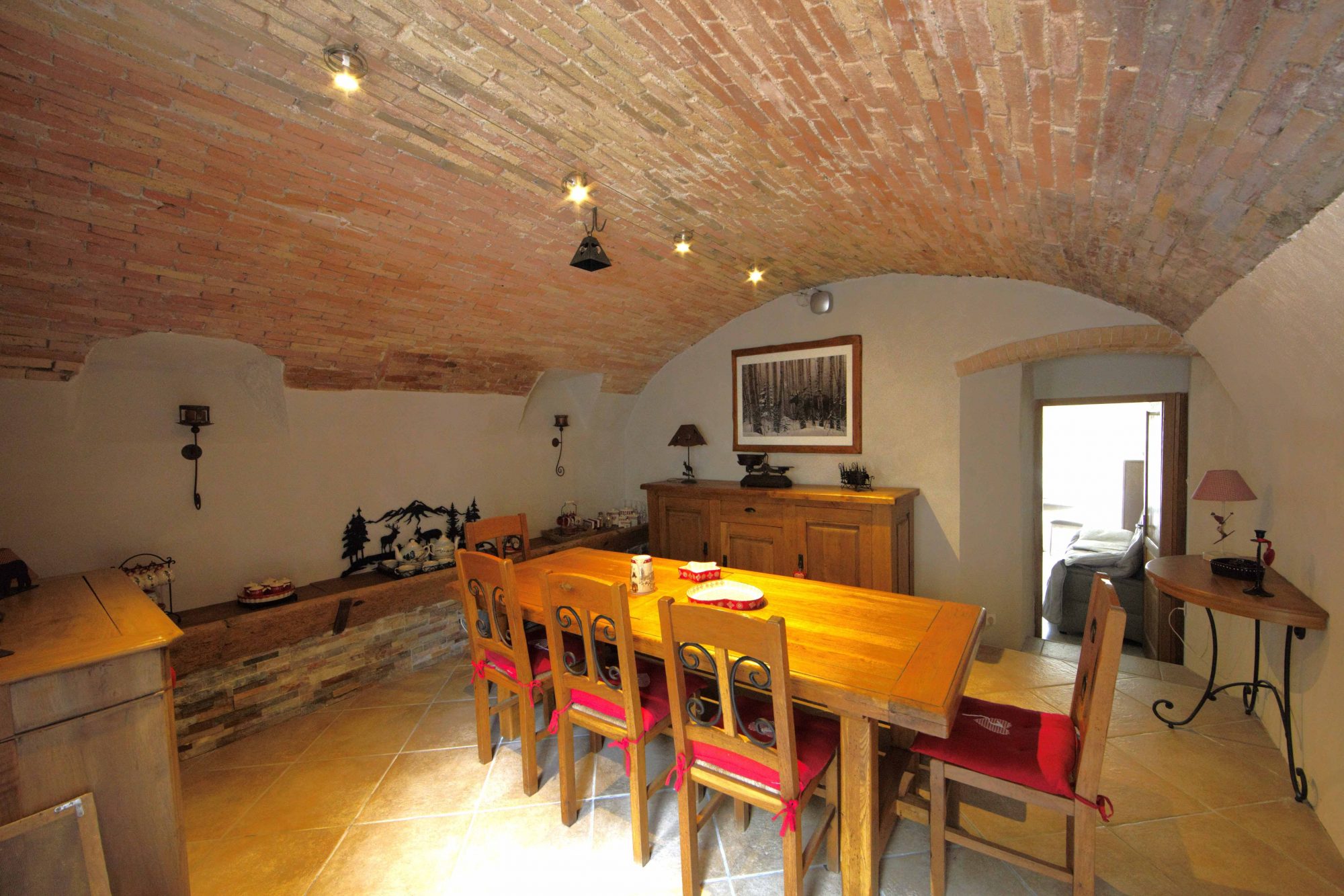 Au rez-de-chaussée: une cuisine aménagée équipée, une pièce d'eau, une cave à vins, un séjour lumineux avec sa cheminée d'angle, une salle à manger très authentique et une grande terrasse exposée Sud-Ouest.