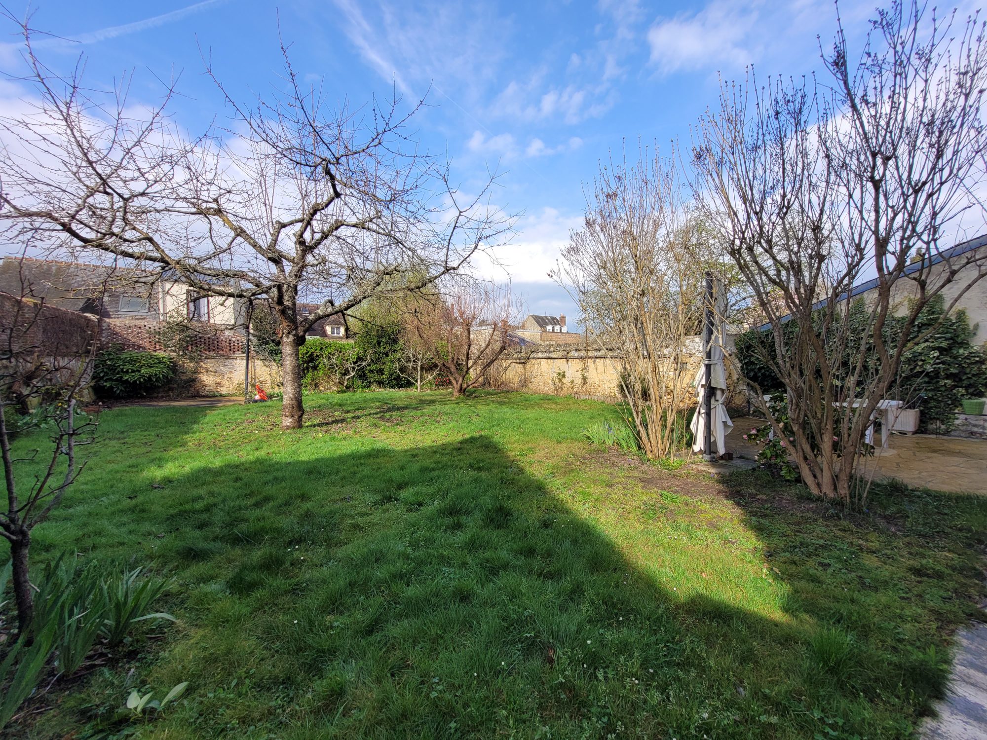 Jardin arboré d'environ 300m2, clos de murs avec appentis et terrasse.