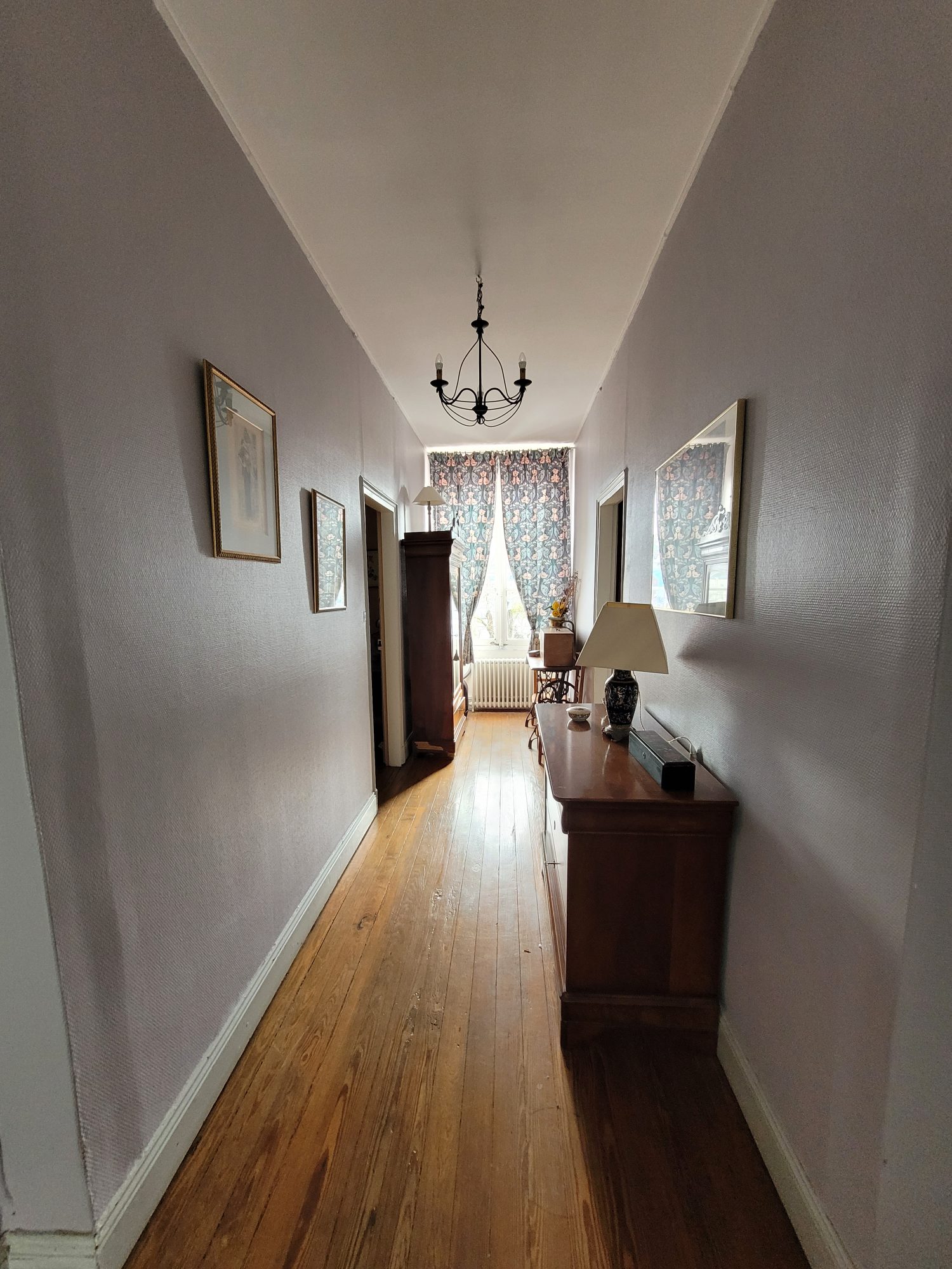 Au 1er étage : Palier desservant trois chambres avec placards, salle de bains avec douche et WC.