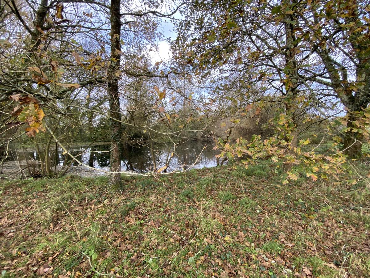 Le terrain, en partie paysagé et arboré, dispose également d’une surface à exploiter avec une partie plan d’eau en fond de parcelle.