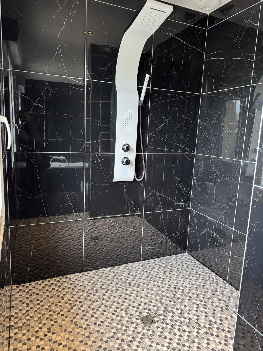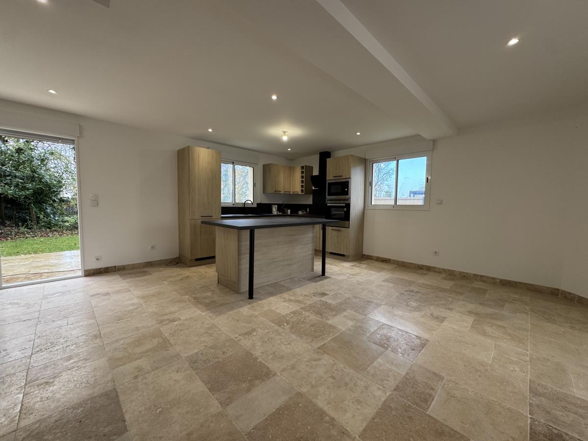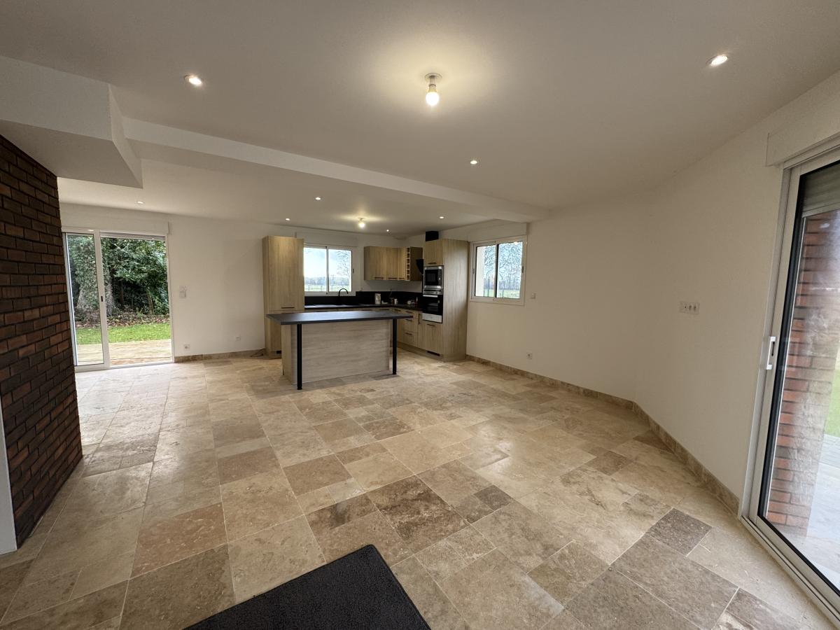 Au RDC: pièce de vie avec cuisine aménagée ouverte (51m², possibilité cheminée), chambre de 14m², salle d'eau, wc et garage