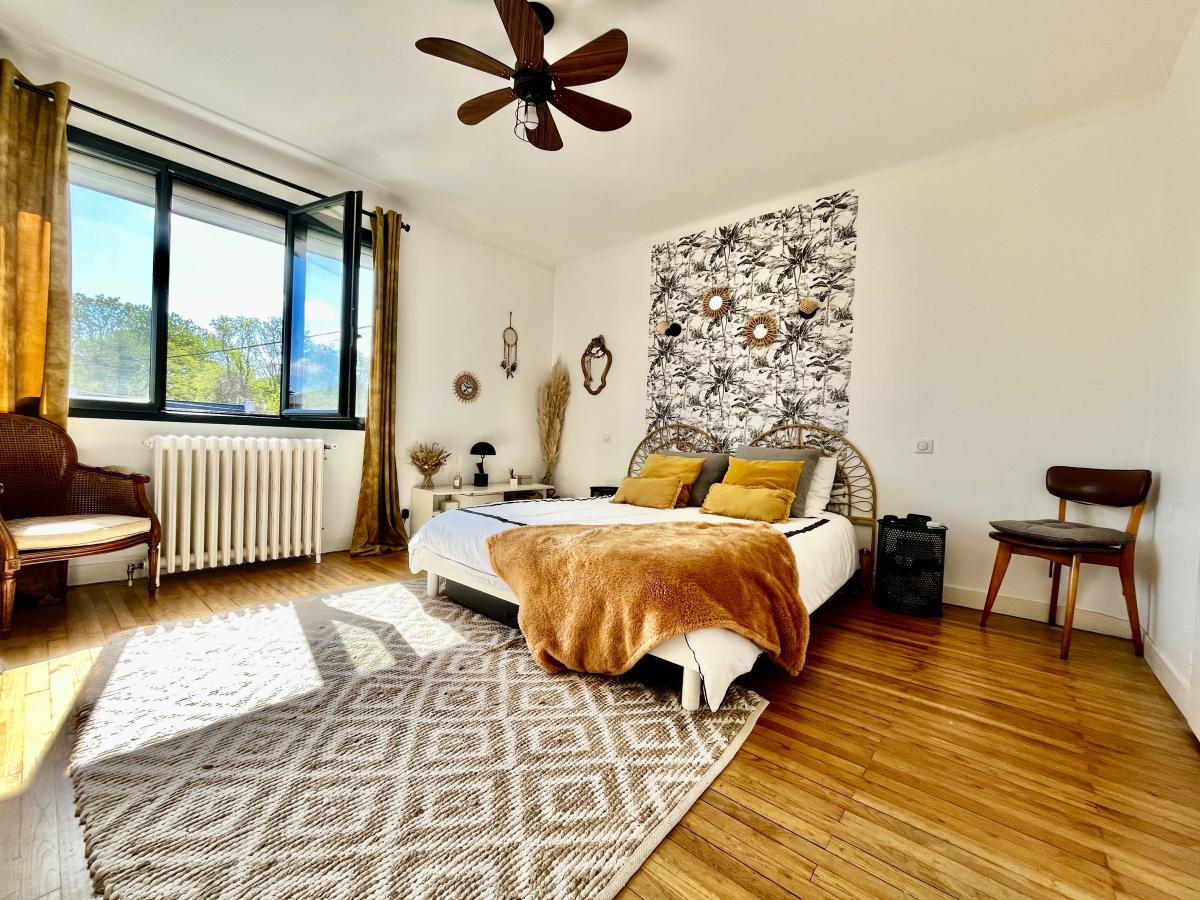 A l'étage, un palier dessert quatre belles chambres sur parquet dont une suite parentale avec dressing et salle d'eau, des wc et une salle de bains.