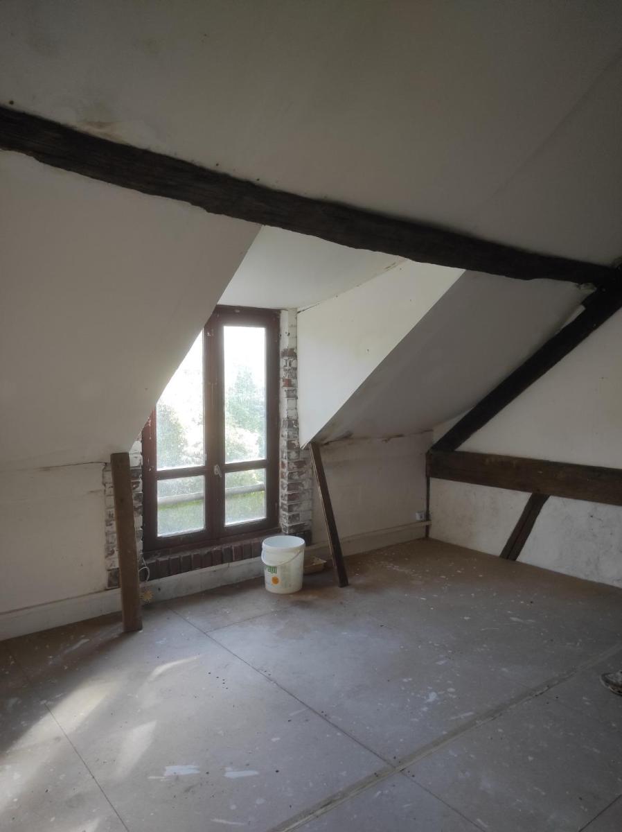 A l'étage : palier, deux chambres en enfilade, dégagement, salle de douche, wc, chambre