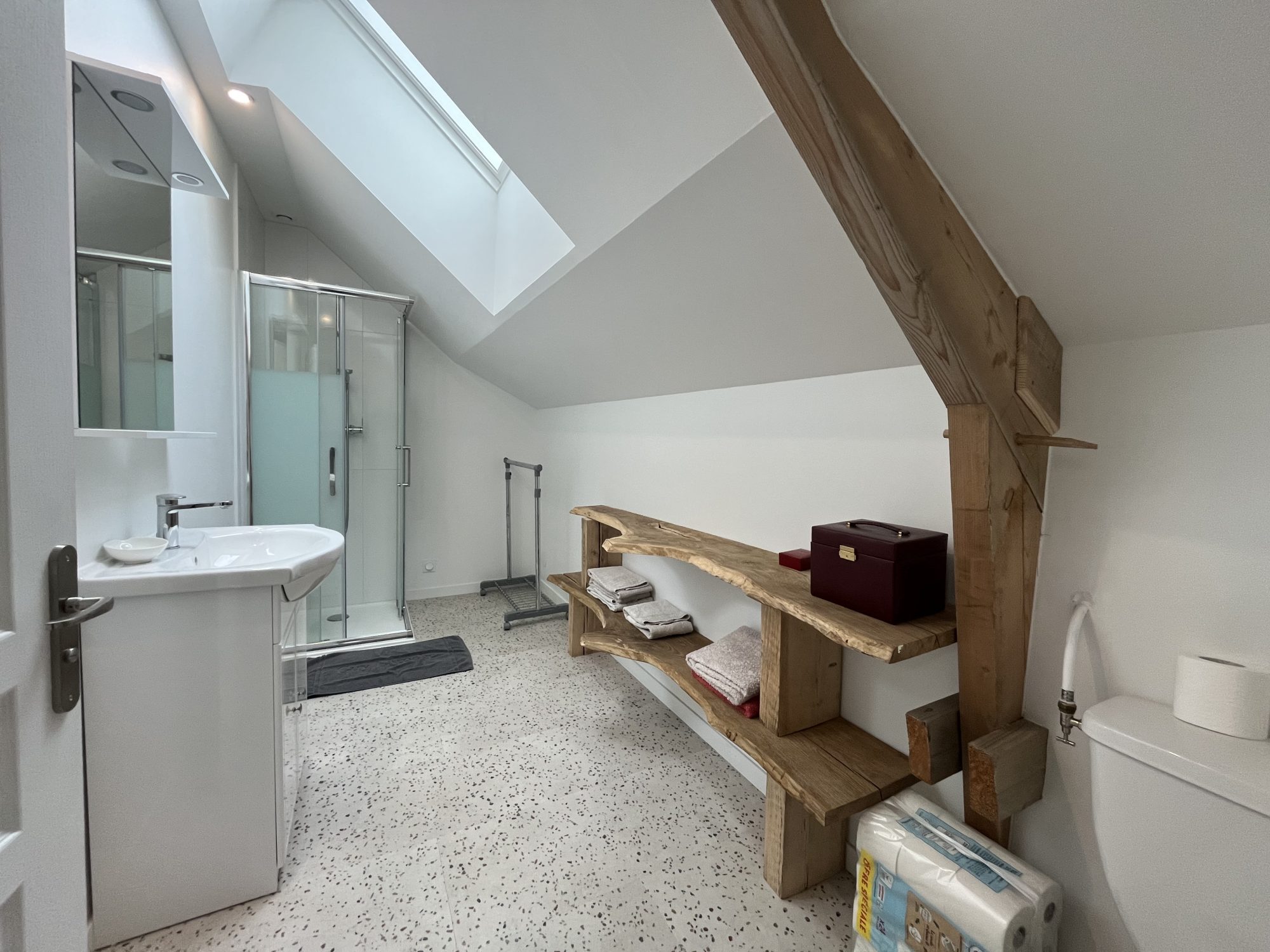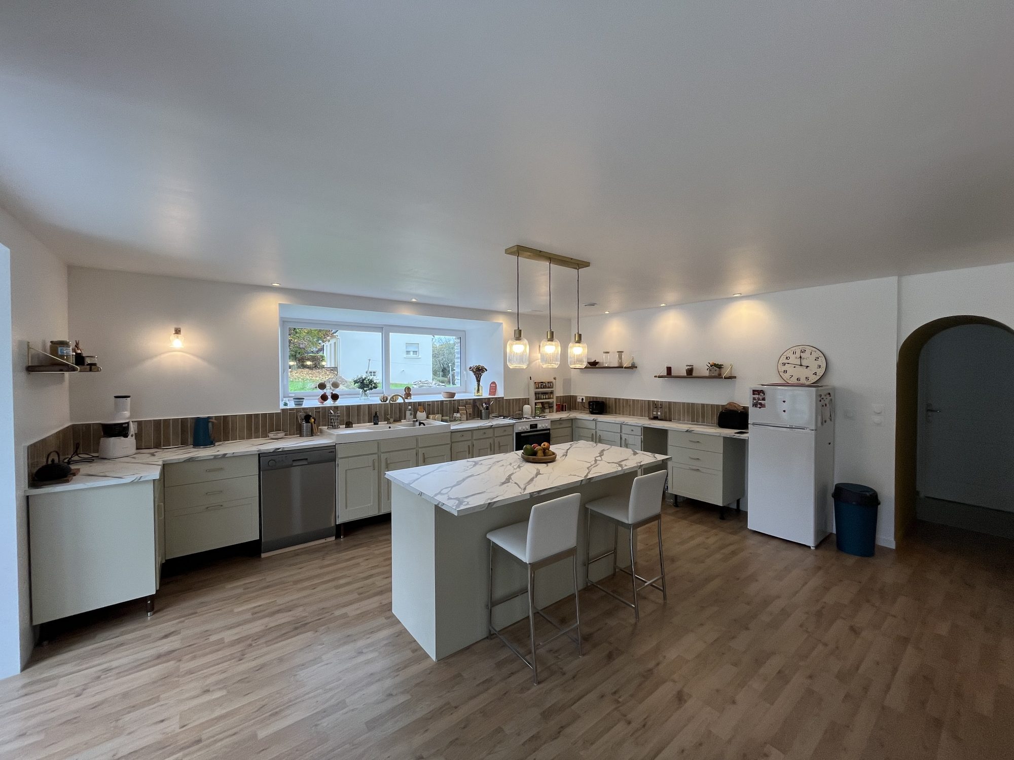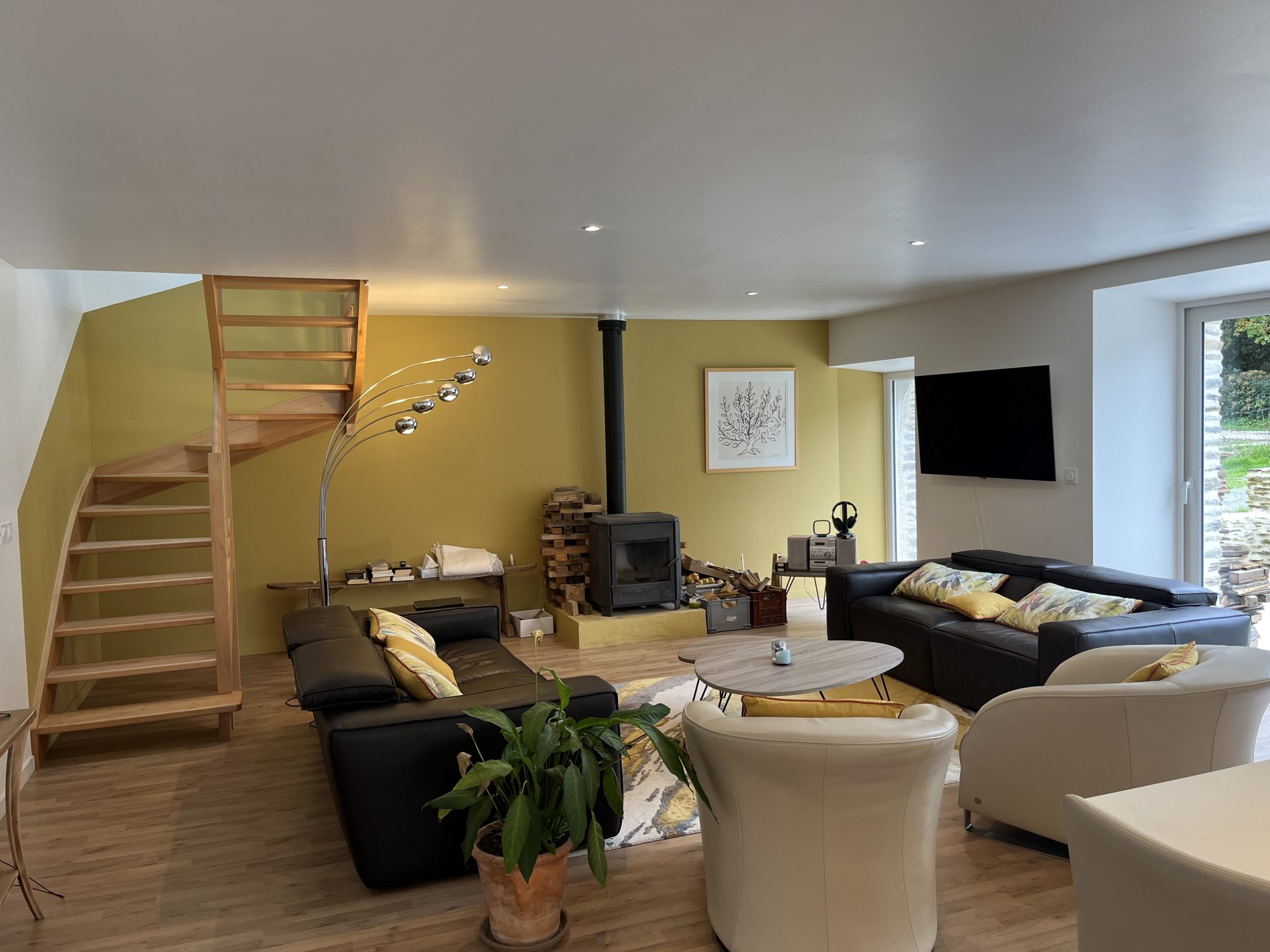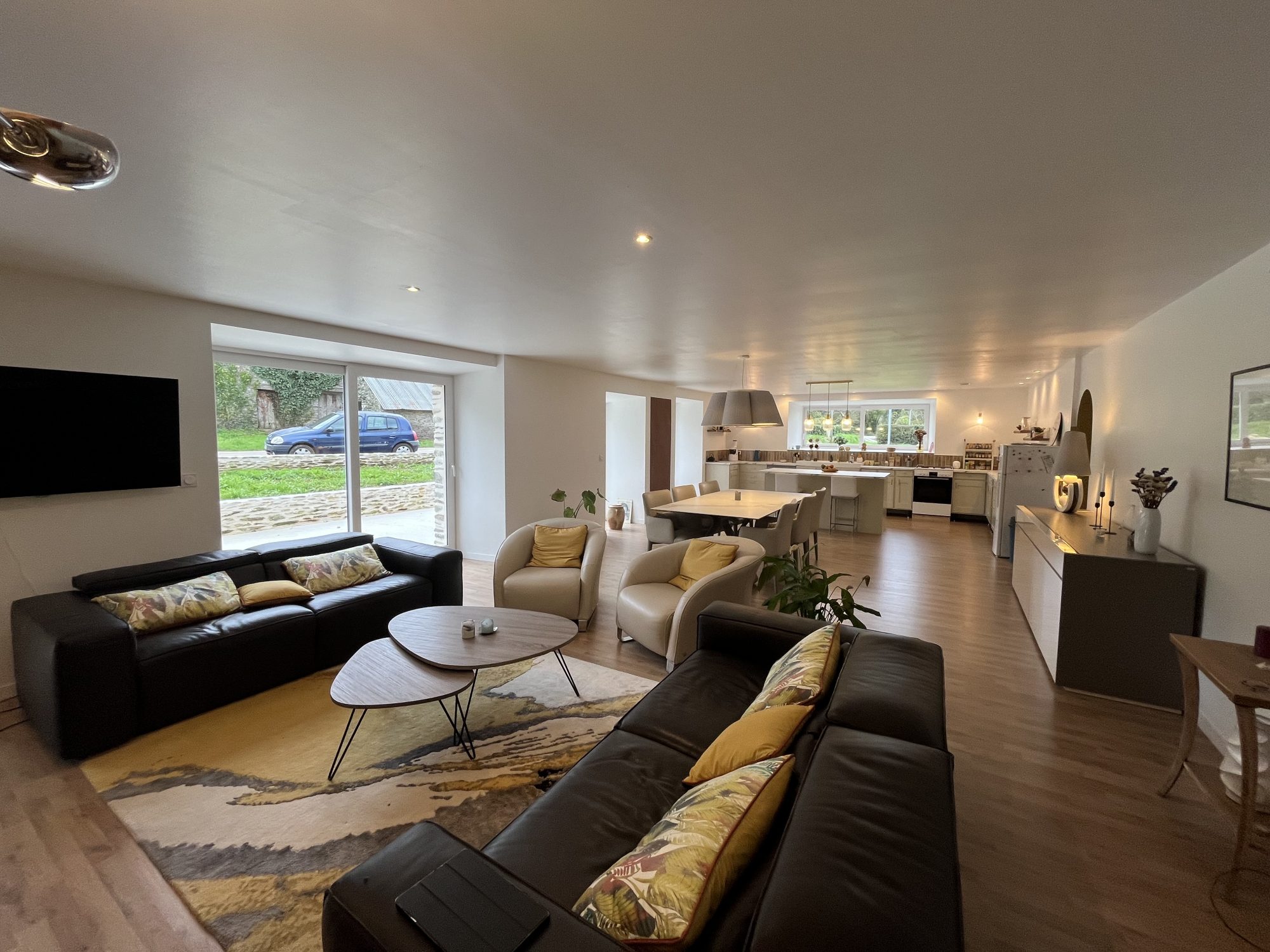 Le séjour de 70 m², baigné de lumière grâce à son exposition sud-ouest, est le cœur de la maison. Il invite à la détente et aux moments conviviaux en famille ou entre amis. La cuisine aménagée et équipée, adjacente au séjour, est un véritable atout pour les amateurs de cuisine. Les deux salles d'eau et les deux WC, dont un indépendant, garantissent un confort optimal au quotidien.