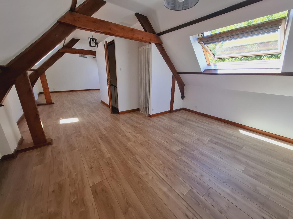AU-DESSUS : grand espace mansardé avec WC. Possibilité de faire 2 chambres et créer une SDB.