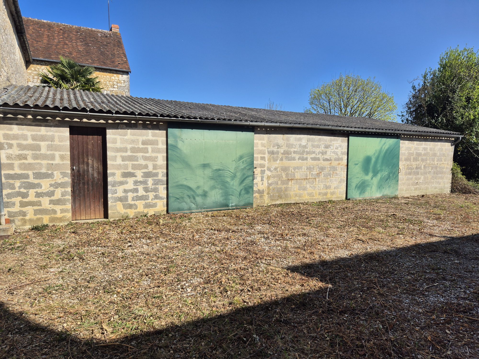 Un jardin sur l'arrière avec une dépendance à usage d'atelier et de garages.