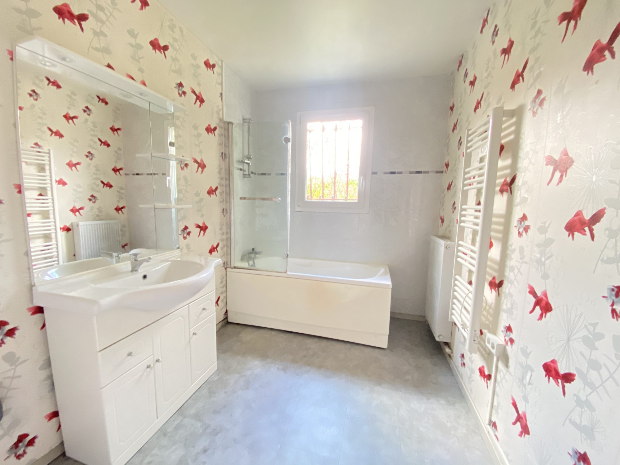 - Au rez-de-chaussée : entrée, couloir distribuant un séjour avec cheminée insert, arrière cuisine avec chaufferie, placards encastrés sous escalier, WC, salle de bains, trois chambres, cabinet de toilette.