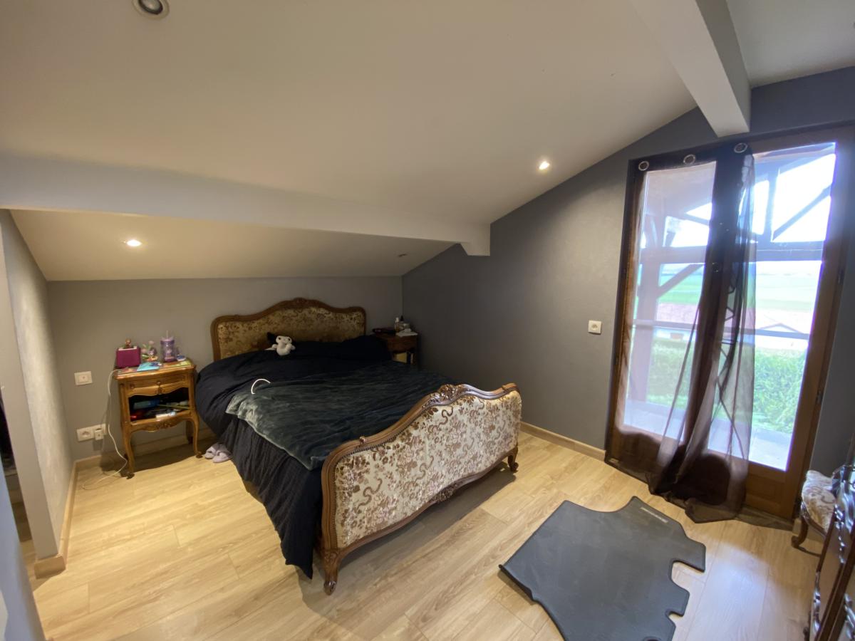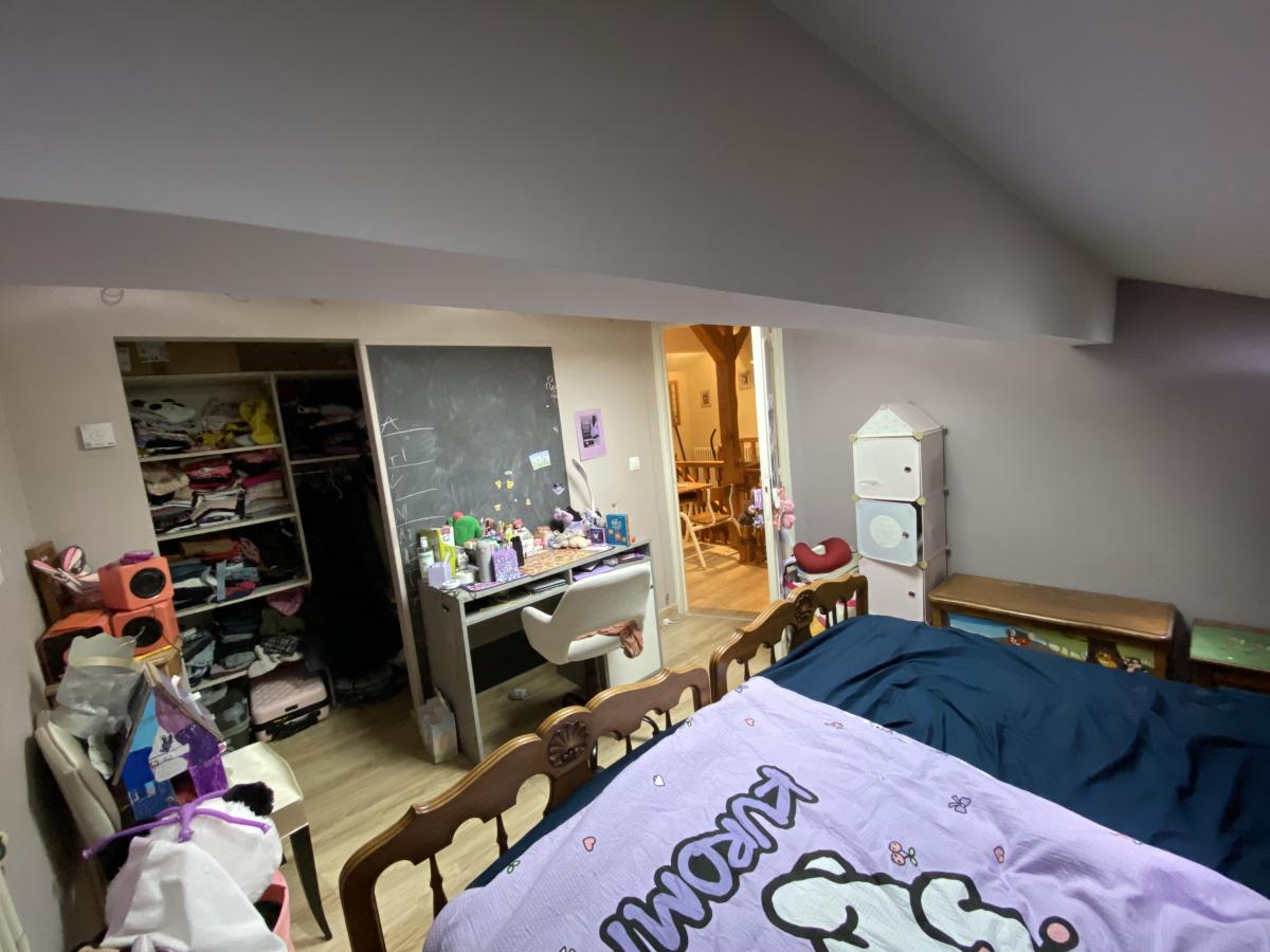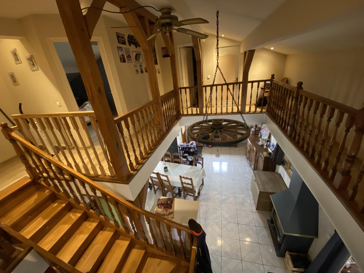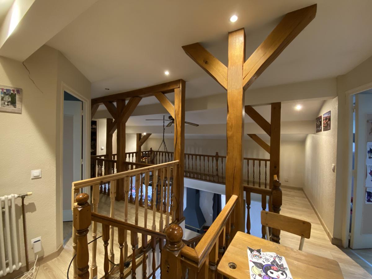 À l’étage, la mezzanine dessert un WC, trois chambres dont deux avec dressing, un espace bureau et un cagibi.