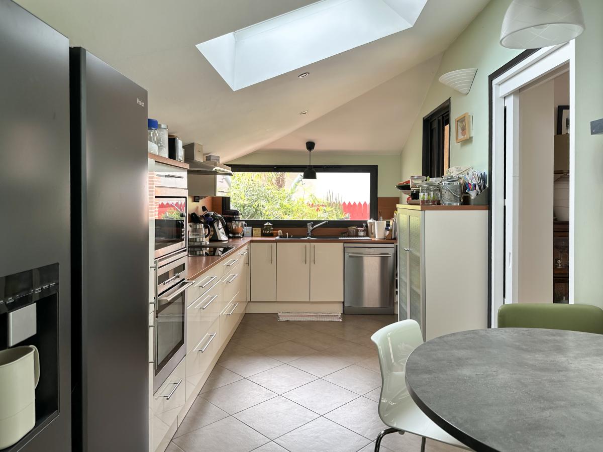 Vous retrouverez une cuisine aménagée et équipée, bénéficiant d’un accès direct au jardin ainsi qu'une arrière-cuisine et d'une pièce supplémentaire exploitable en bureau ou en espace de rangement.