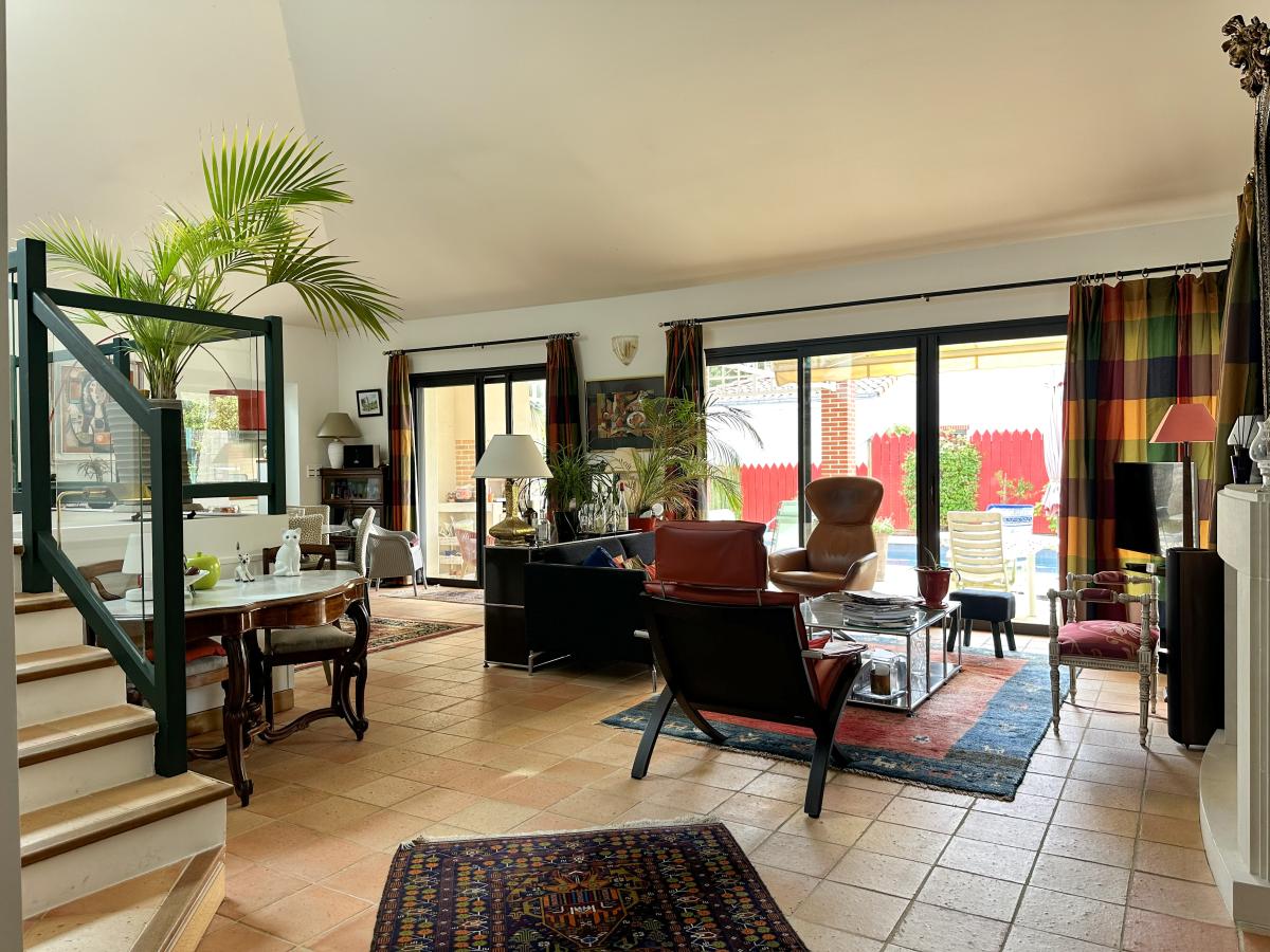 Dès l’entrée vous serez séduits par un vaste séjour cathédrale exposé Sud, climatisé et doté d’une cheminée. Il s’ouvre sur une terrasse en pierre naturelle partiellement couverte par un auvent avec cuisine d'été et surplombe la piscine chauffée, le tout dans un cadre verdoyant aux inspirations méditerranéennes.
