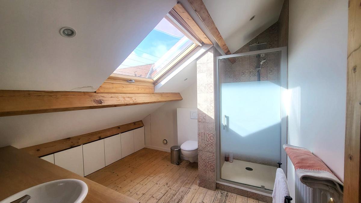 - Au dernier étage, un palier dessert deux belles chambres de 17 m² et 24 m² au sol, ainsi qu’une salle d’eau avec WC.