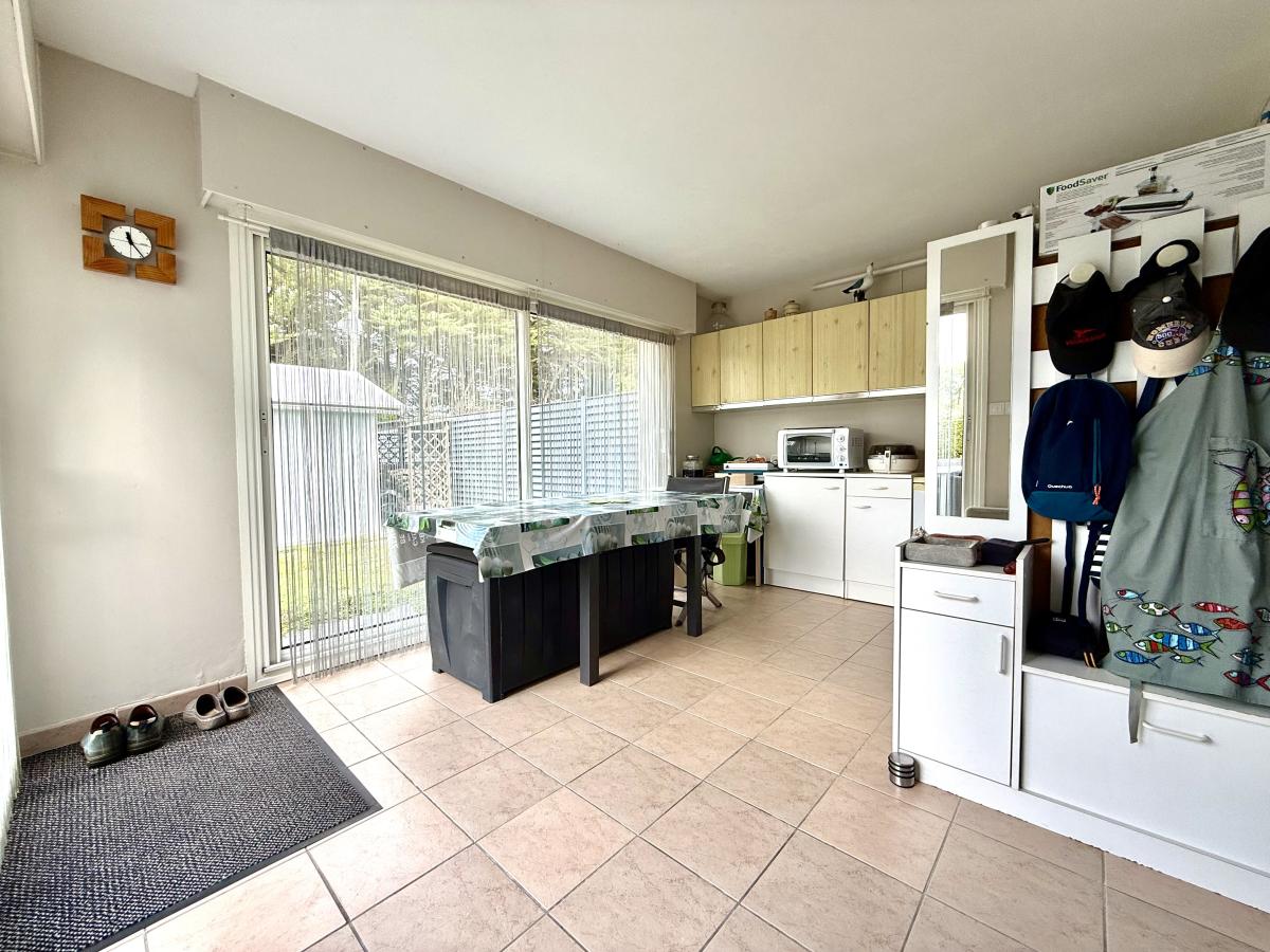 Côté pratique elle dispose également d'une arrière-cuisine, un agréable garage avec une lingerie et une salle de douche avec WC pour le retour de plage et un grenier au dessus !!