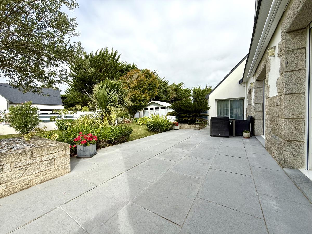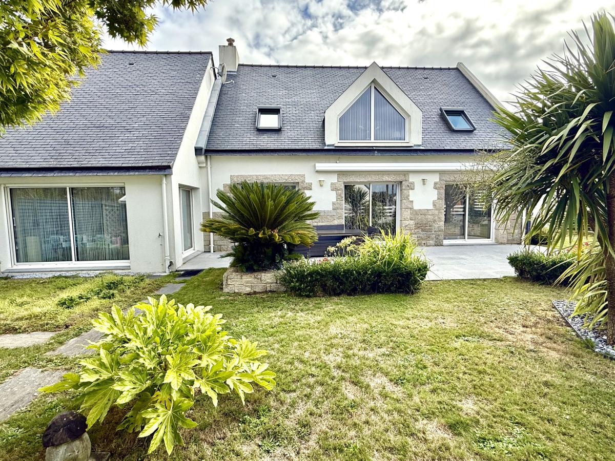 Idéalement située à seulement 700 mètres de la PLAGE, dans un lotissement paisible, superbe maison néo-Bretonne rénovée offrant une surface habitable de 160 m² sur un magnifique terrain clos et paysagé de 800 m².