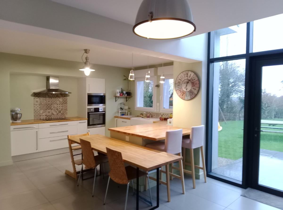 Au Rez-de-chaussée : comprenant : un Hall d'entrée spacieux ouvert sur l'ensemble des pièces de vie de l'habitation, séjour, cheminée feu et cuisine équipée américaine en îlot central, bureau (ou chambre au rez-de-chaussée), WC, cellier, chaufferie, double garage (avec grenier) une terrasse, jardin.
