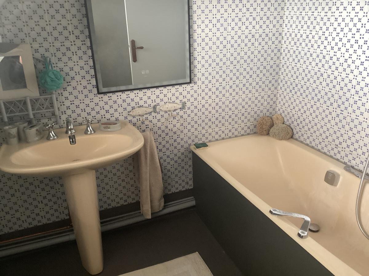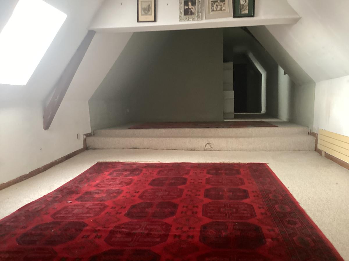 A l’étage: grande pièce palière, salle de bains avec WC, dressing, chambre.