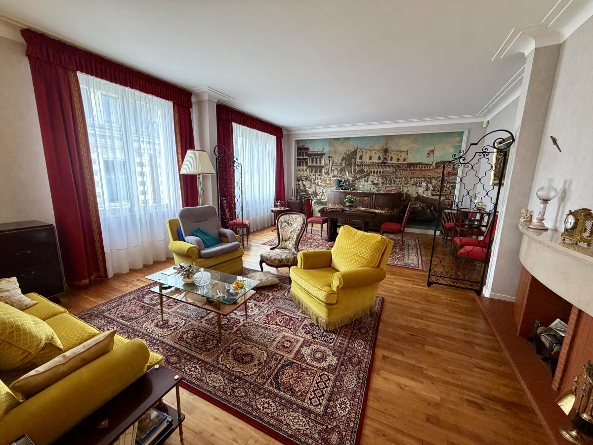 A l'étage : un pallier de 9.4 m² desservant un salon/séjour avec cheminée de 38.05 m², une cuisine aménagée de 13.07 m², une chambre avec placard de 15.85 m², un dressing de 1.46 m², une salle de bains avec wc de 5.58 m².