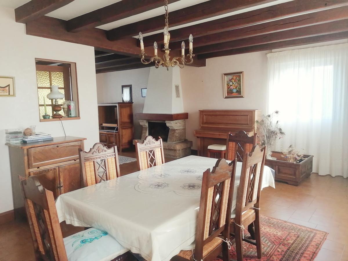 Maison à usage d'habitation des années 80 composée d'une entrée, un salon séjour, une cuisine A/E, une buanderie, dgt, WC, Chambre avec salle d'eau attenante; A l'étage, un palier desservant 4 chambres dont une avec une salle d'eau privative, WC, Salle de bain avec baignoire et douche. A l'extérieur, un cellier et un garage avec grenier aménageable attenant à la maison. Le tout sur un terrain entièrement constructible.