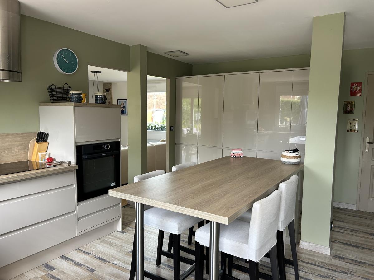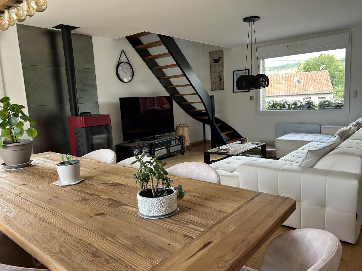 Sur environ 1500m2 de terrain aménagé et clos, BELLE MAISON familiale et individuelle de 1998 sur sous-sol. L'habitation, remise au gout du jour et en parfait état, comprend hall avec placards aménagés, séjour de 36m2 avec poêle a granulés et escalier apparent, cuisine équipée de 17m2 ouverte, salle d'eau, wc, couloir desservant 2 chambres de 10 et de 19m2. A l'étage palier, 3 chambres de 11-12 et 13m2, salle de bains et wc. Sous sol complet avec garage 3 voitures et autres stockage. Chauffage électrique et par le poêle, panneaux solaire couvrant la consommation annuelle. Terrasse et jardin arrière plein sud.