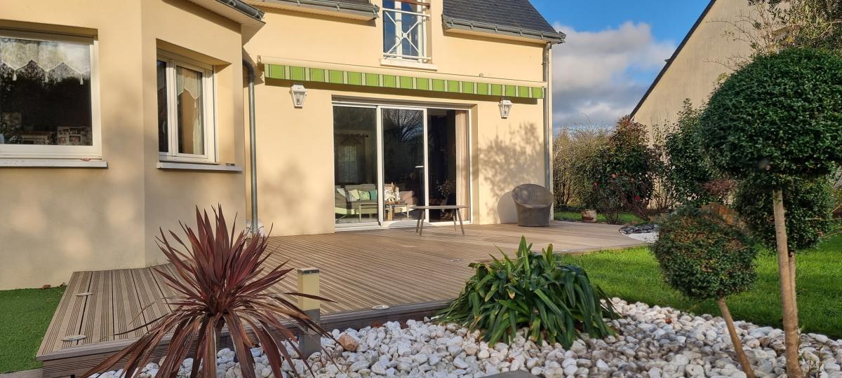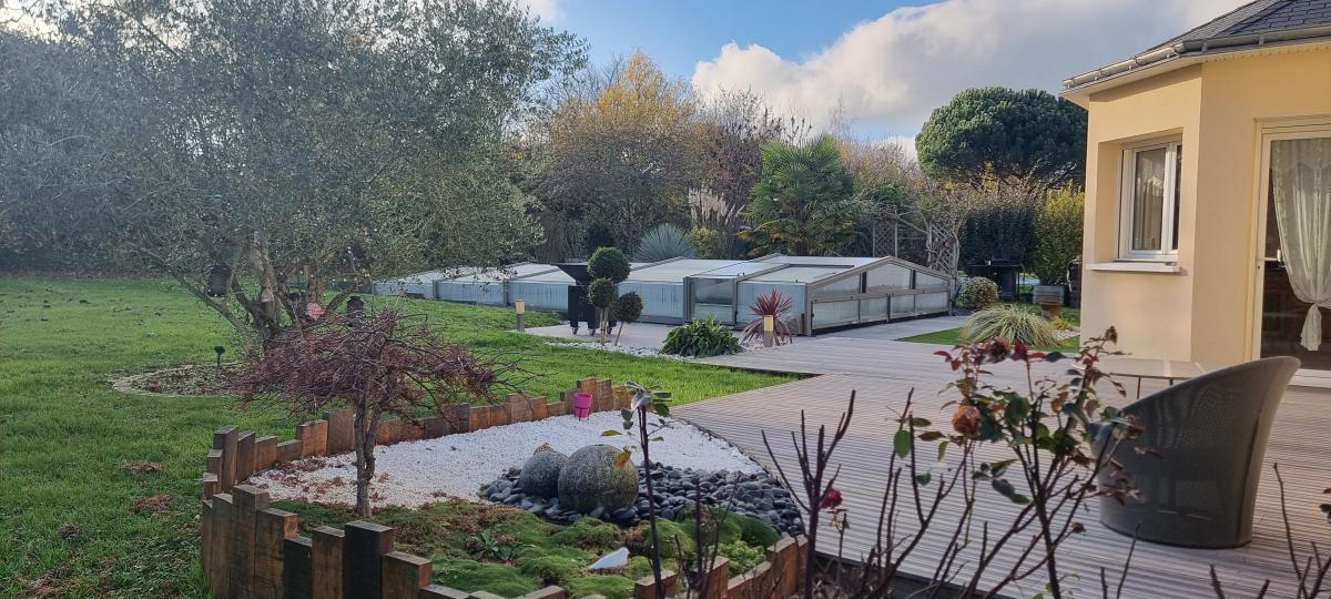 Sur un terrain paysagé de 1 042 m², parfaitement entretenu, l’extérieur séduit immédiatement par son vaste jardin arboré, ainsi que sa terrasse bois intime et chaleureuse, piscine enterrée 4 × 10 m (de 2010), stationnements pavés, portail motorisé.