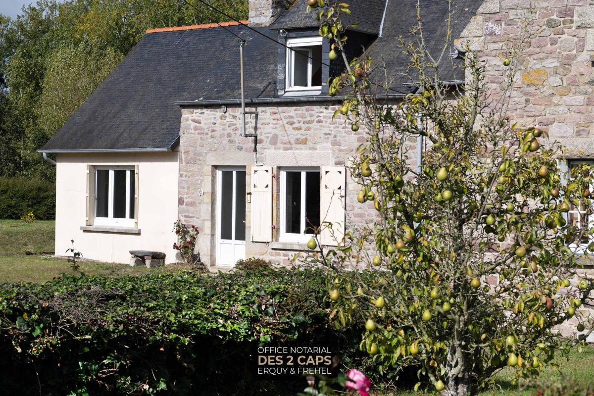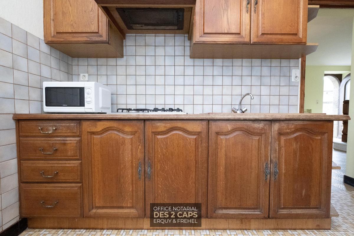 Dans le bourg, maison mitoyenne composée au rez-de-chaussée d'une entrée sur un salon/séjour, d'une cuisine, d'une arrière cuisine avec une douche et WC. A l'étage, un couloir desservant trois chambres, une salle de bains et un bureau. Un garage attenant et un hangar. Un jardin d'une surface de 641 m² avec un puits.