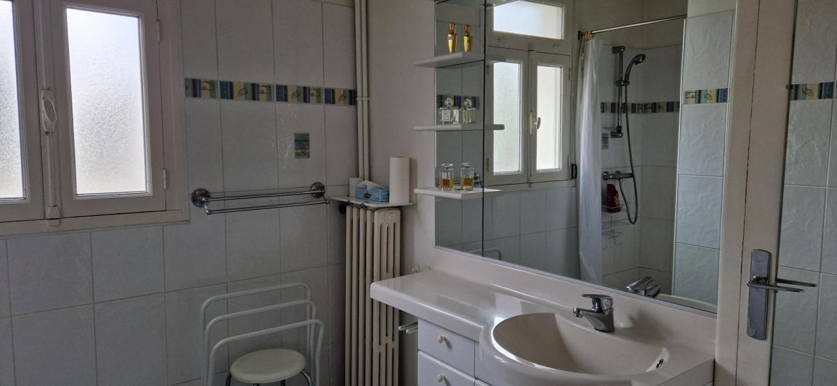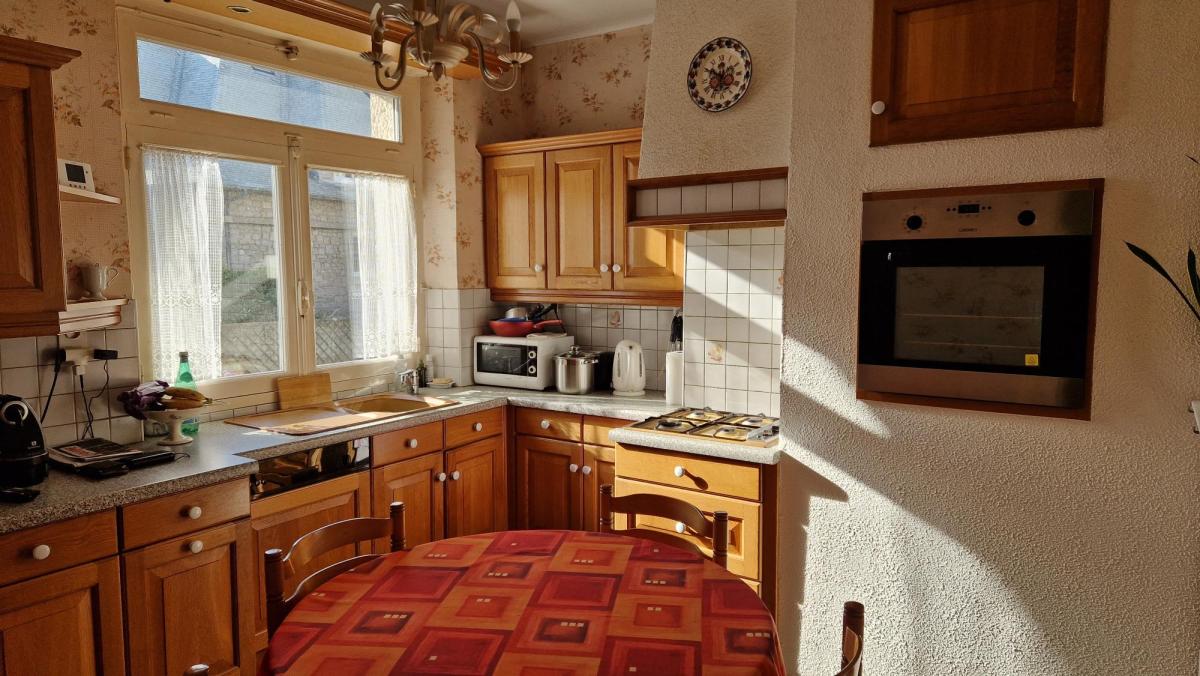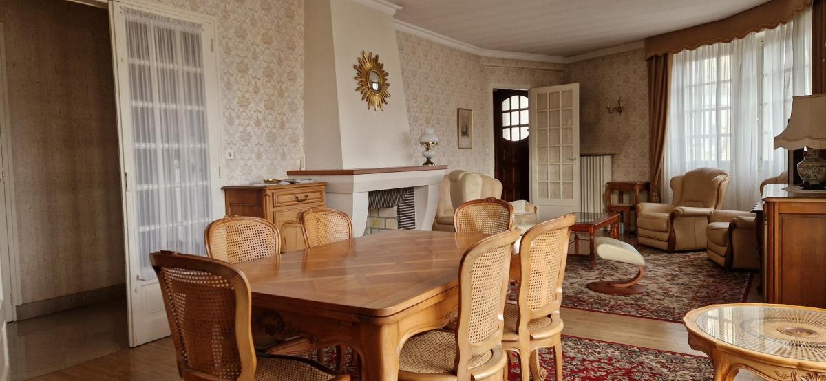 Saint Malo - Courtoisville - Villa (1961) comprenant (165m²) - Rez-de-chaussée surélevé : hall d’entrée desservant une pièce de séjour (35.37m² env.) avec cheminée et donnant sur terrasse (sud), couloir desservant une cuisine (12m² env.) indépendante aménagée et équipée, placards, salle de douches, wc et deux chambres (11.18 et 15.64m² env.). Au premier étage : le palier dessert une chambre avec placard (16.28m² env.), un grenier, couloir desservant une cuisine (6.67m² env.), une salle de douches, wc, deux chambres (13.55 et 7.57m² env.). Sous-sol complet avec garage, chaufferie, laverie et pièce de rangement. Jardin clos (363m²)