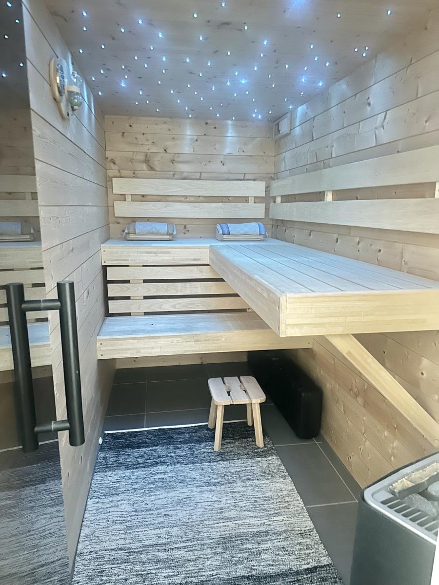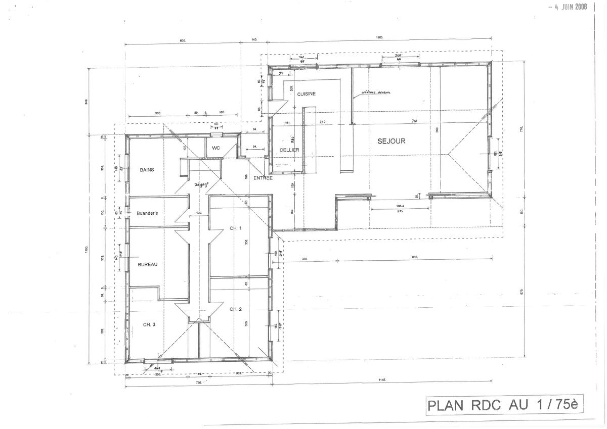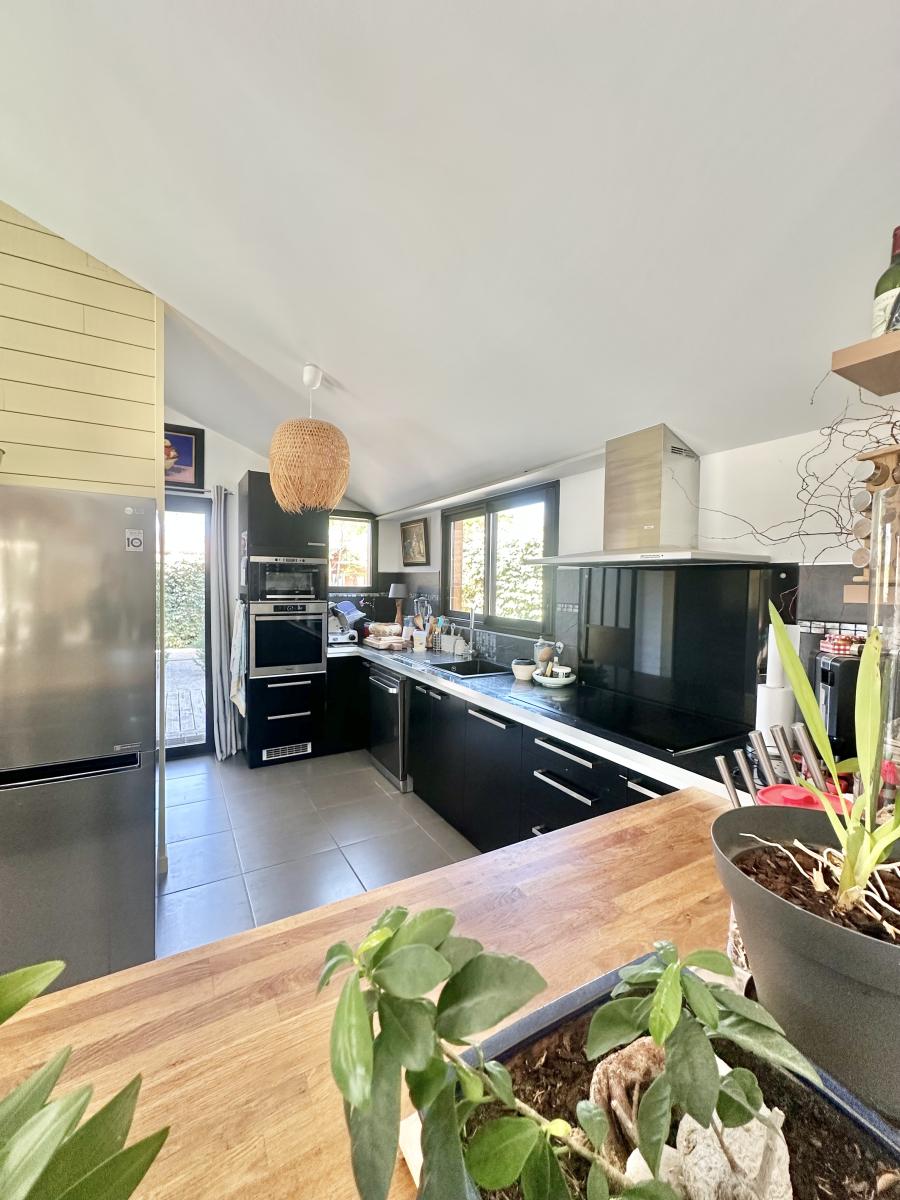Elle se compose d'une entrée avec placards, un wc, une pièce de vie très lumineuse de plus de 70 m² sublimée par son plafond cathédrale et sa cuisine équipée, un coin cosy, un cellier, dégagement, salle de bains avec douche, un sauna, 4 chambres dont une actuellement en bureau.