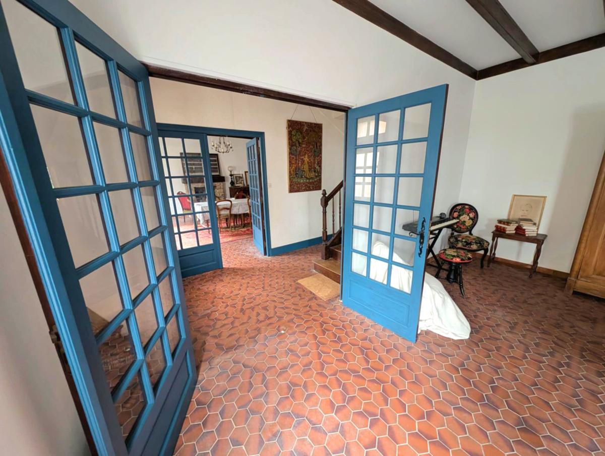 - en rez-de-chaussée : entrée, salon avec cheminée, cuisine, salle à manger avec cheminée, extension type véranda aménagée en salle à manger, wc