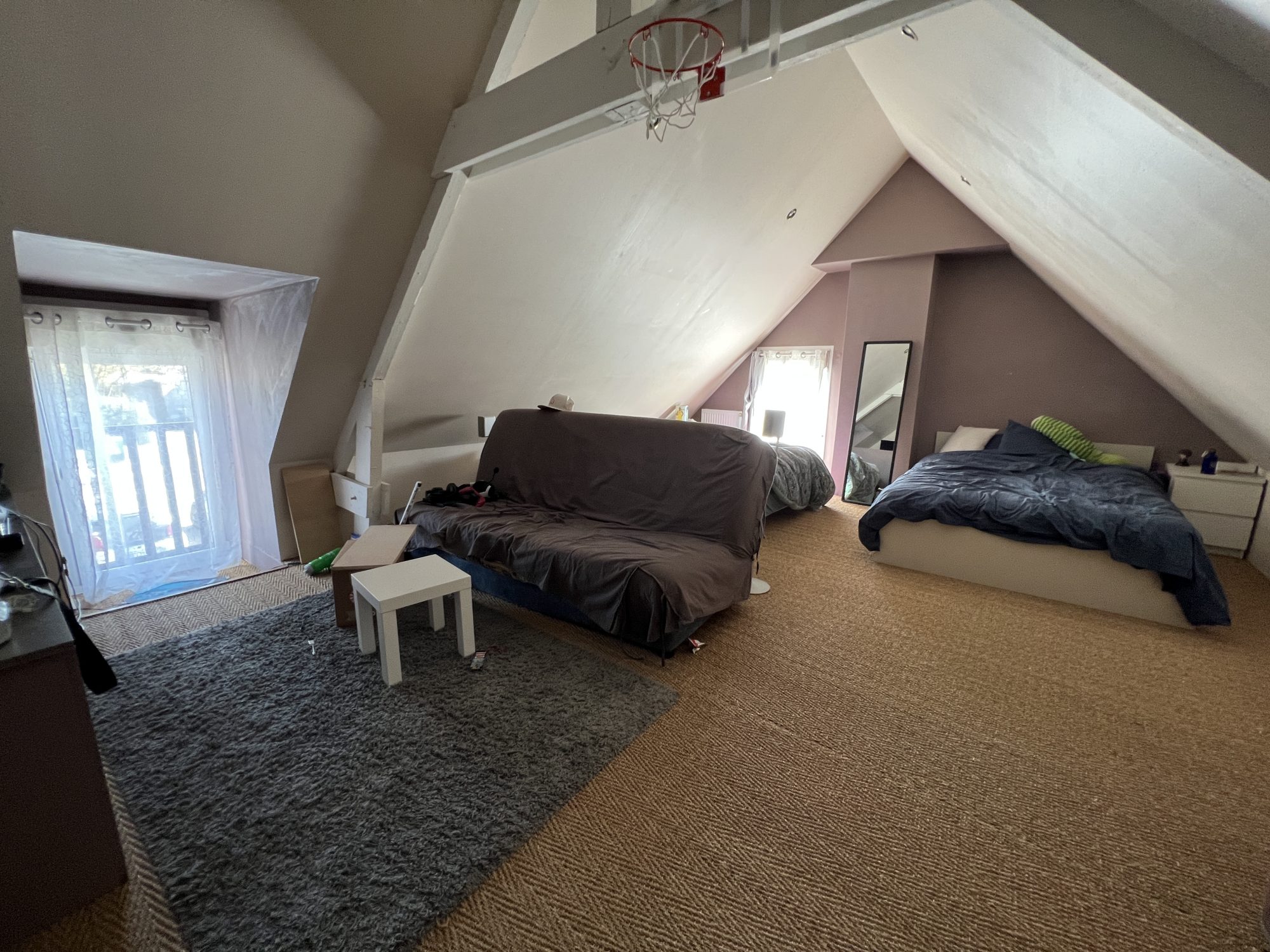 À l’étage, le palier dessert trois chambres, dont une chambre double, ainsi qu’une salle de bains et des WC.