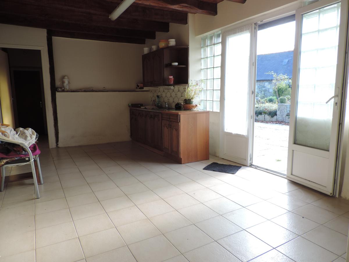 Jolie longère en pierres rénovée comprenant au rez-de-chaussée une entrée/bureau avec un poêle a bois, une cuisine aménagée et équipée ouverte sur un grand séjour avec cheminée/insert, une arrière-cuisine, une salle d'eau/w.c, une chaufferie et un cellier avec grenier isolé au-dessus.