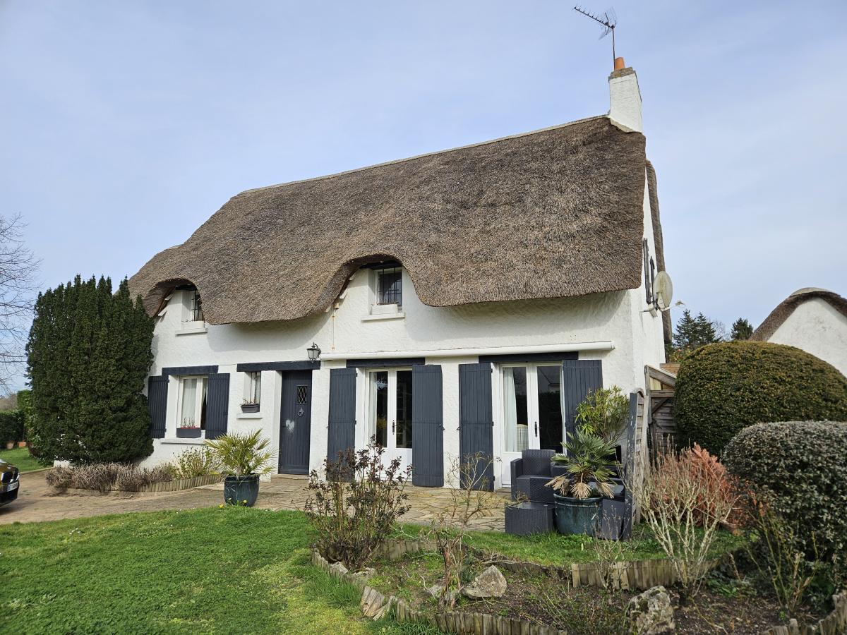 SAINT LYPHARD, Parc de la Brière, dans un charmant hameau à 6 kms de Guérande, Chaumière sur 1 345 m², comprenant : RDC : Entrée dégagement, salon séjour avec cheminée, cuisine aménagée/équipée, salle de bains, wc avec lave-mains, une chambre avec salle de bains/wc, une chambre avec placard, ETAGE : Mezzanine, trois chambres dont une avec douche et lavabo, une salle de bains, wc, dressing.