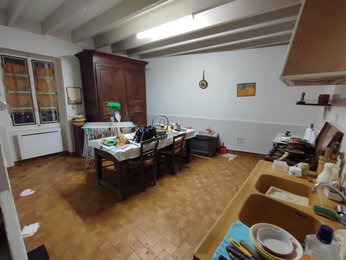 Maison à usage d'habitation d'environ 170 m², composé au rdc : d'une véranda, une salle d'eau, un wc, un cellier, une cuisine dinatoire, un salon avec cheminée et une chambre.