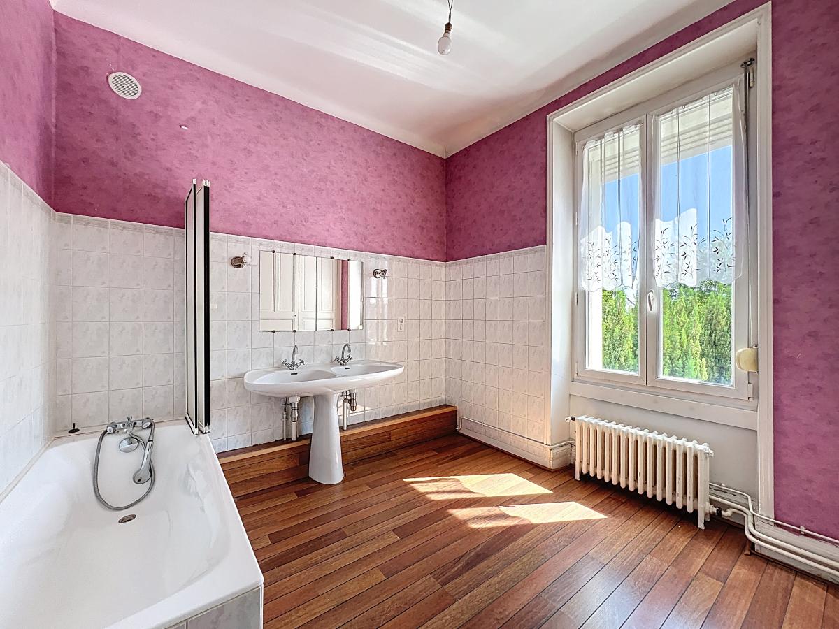 - 1er étage : 3 grandes chambres, salle de bains, wc .