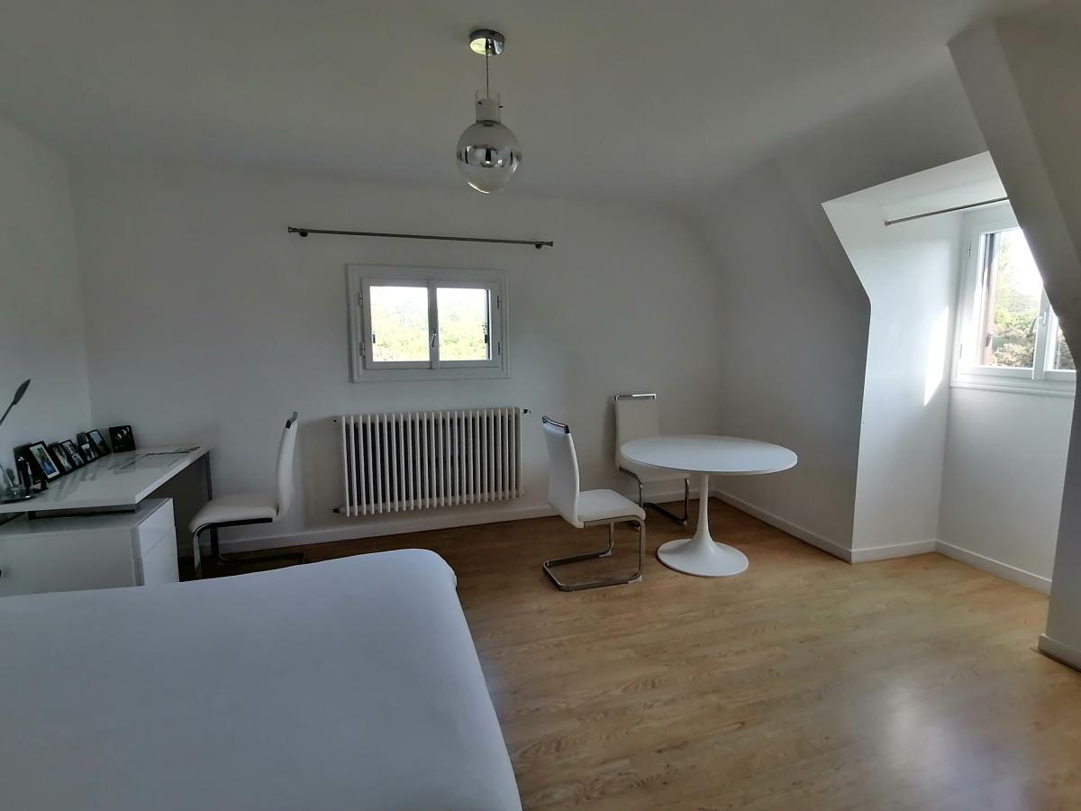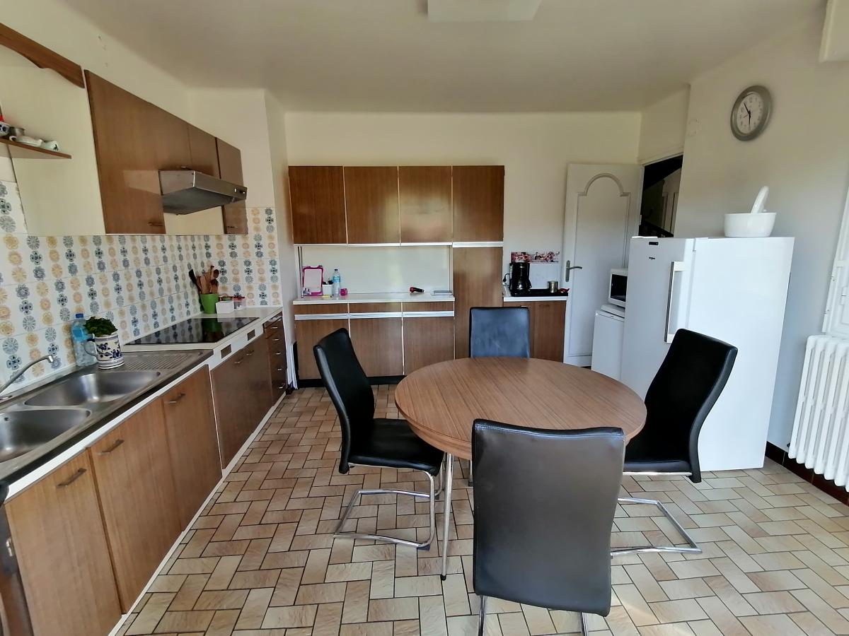 Au rez-de-chaussée surélevé: vaste entrée, cuisine indépendante, deux chambres, salle de bains, WC, séjour-salle à manger avec insert.
