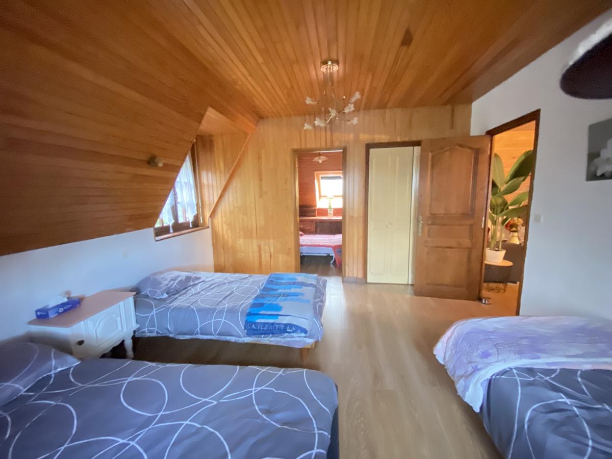 A l'étage : une mezzanine pouvant servir d’espace détente ou bureau, une grande chambre avec coin bureau, une deuxième chambre, une salle d’eau avec un WC