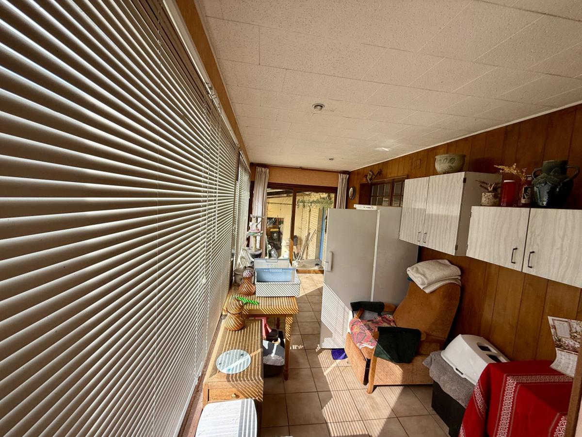 A l’arrière, grande parcelle engazonnée, arborée avec un abri ouvert, une dépendance non fermée, un garage d'environ 50m2 avec porte manuelle en bois.
