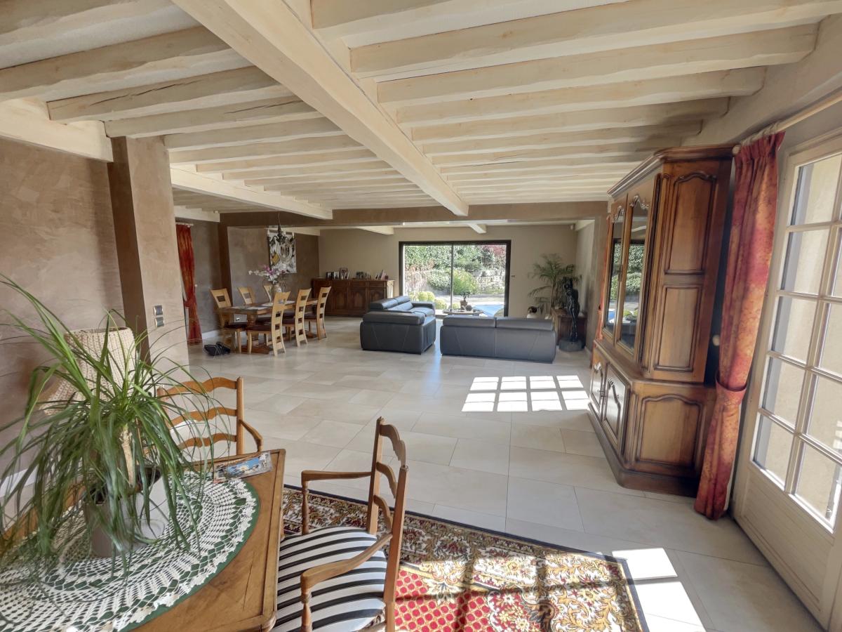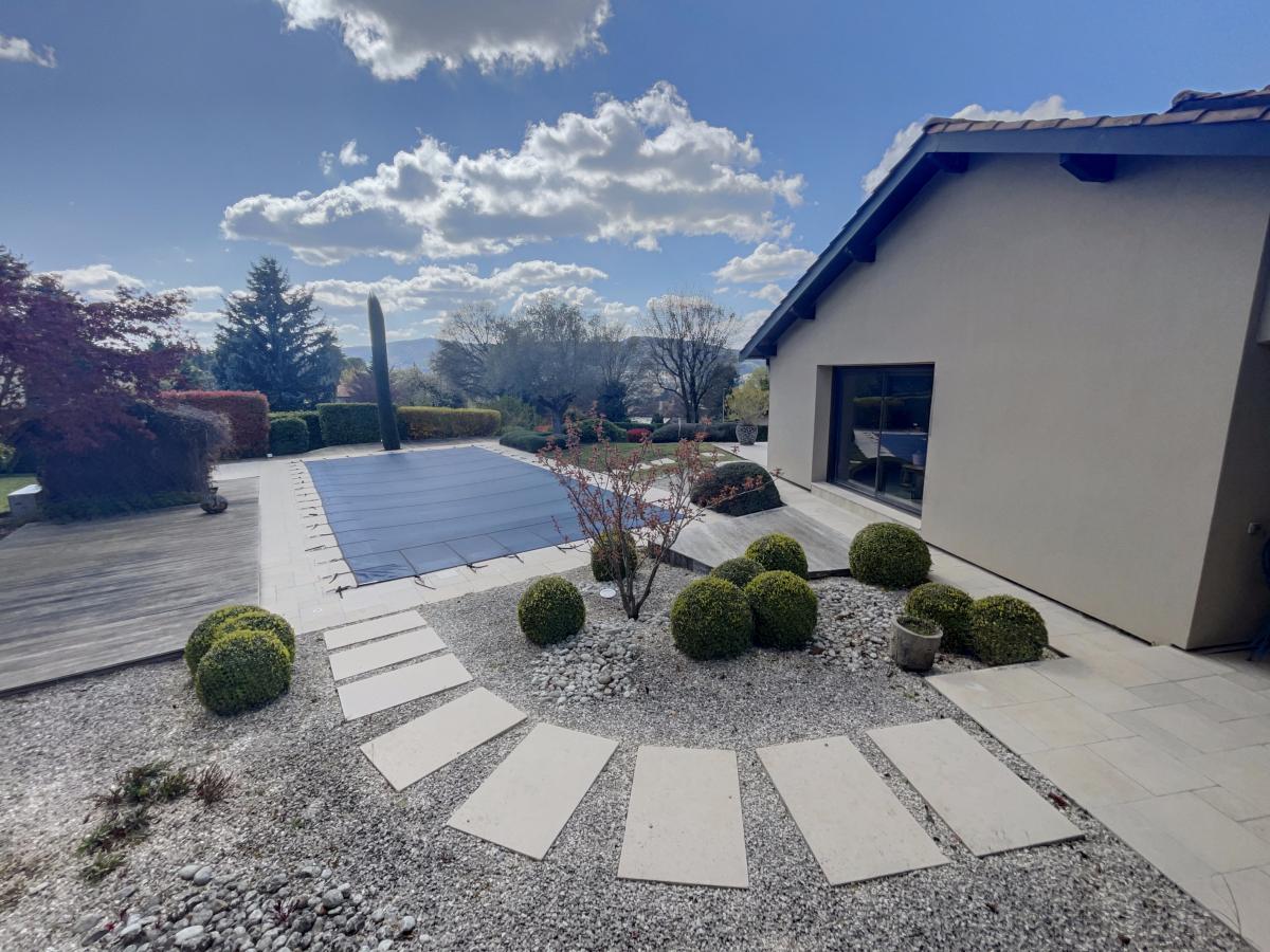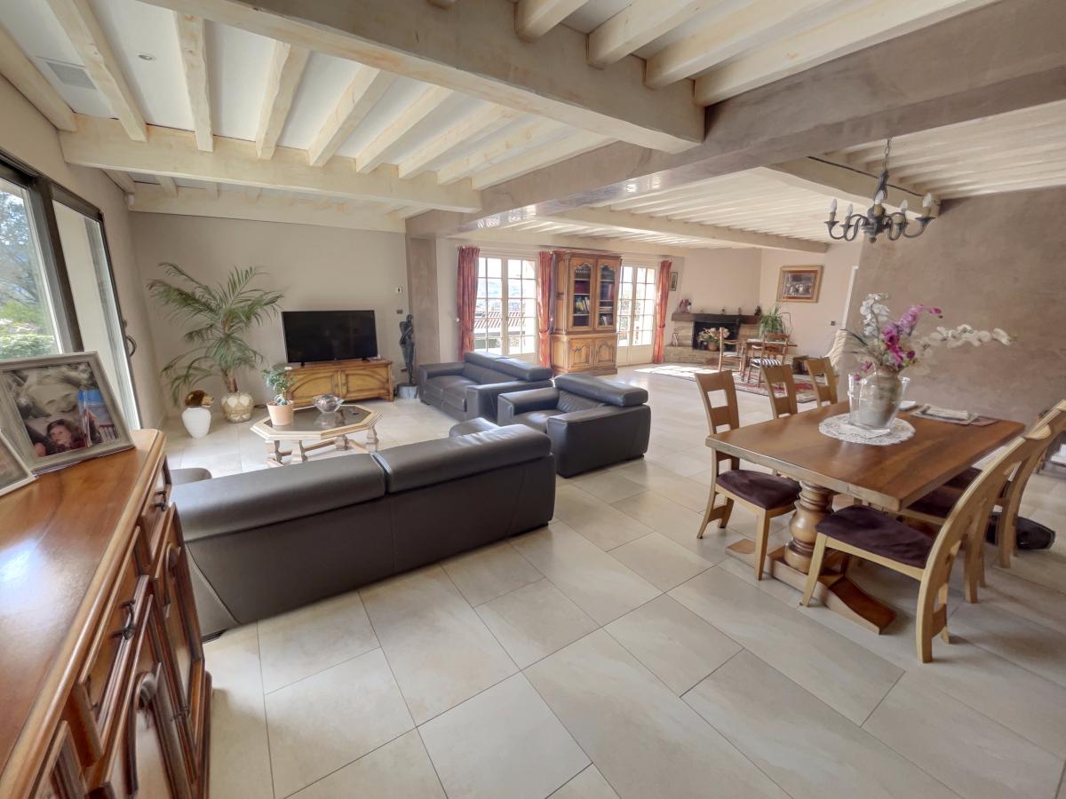 Sur la commune de MONTANAY (69250), sur les hauteurs avec très belle vue imprenable, maison d'habitation traditionnelle entièrement réhabilitée et rénovée. Elevée sur sun sous-sol total semi-enterré en partie aménagé d'un bureau, buanderie, coin cuisine et salle d'eau, wc, salle de jeux, garage double et cave à vin climatisée, la partie principale d'habitation se situe au premier de plain pied sur le jardin et deuxième niveau pour une superficie habitable totale d'environ 90m² et se compose en rez-de-jardin d'un hall d'entrée, d'une grande pièce principale salon-séjour d'environ 68m², cuisine équipée, deux chambres dont une suite parentale de 37 m² avec dressing et salle d'eau attenante, véranda, wc et dégagement et au premier étage de deux chambres, salle de bains, wc et dégagement. Chauffage central au gaz de ville par le sol avec climatisation réversible gainable et maison isolée par l'extérieure. DPE C. L'ensemble immobilier est édifiée sur un terrain attenant tout autour d'une contenance totale de 1595m² avec piscine traditionnelle chauffée de 10mx5m. Environnement et emplacement privilégiés pour cette villa dominante sur les hauteurs avec des prestations de qualités. 950 000 euros honoraires de négociation compris charge vendeur.